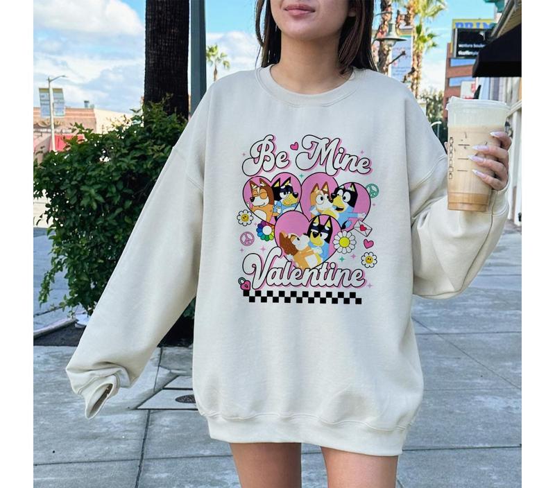 Bluey And Bingo Valentine Couple Sweatshirt, Bluey Mum Dad T-Shirt,Valentine Shirt For Mom and Dad, Be Mine Valentine Bluey Sweatshirt Bandit Heeler S