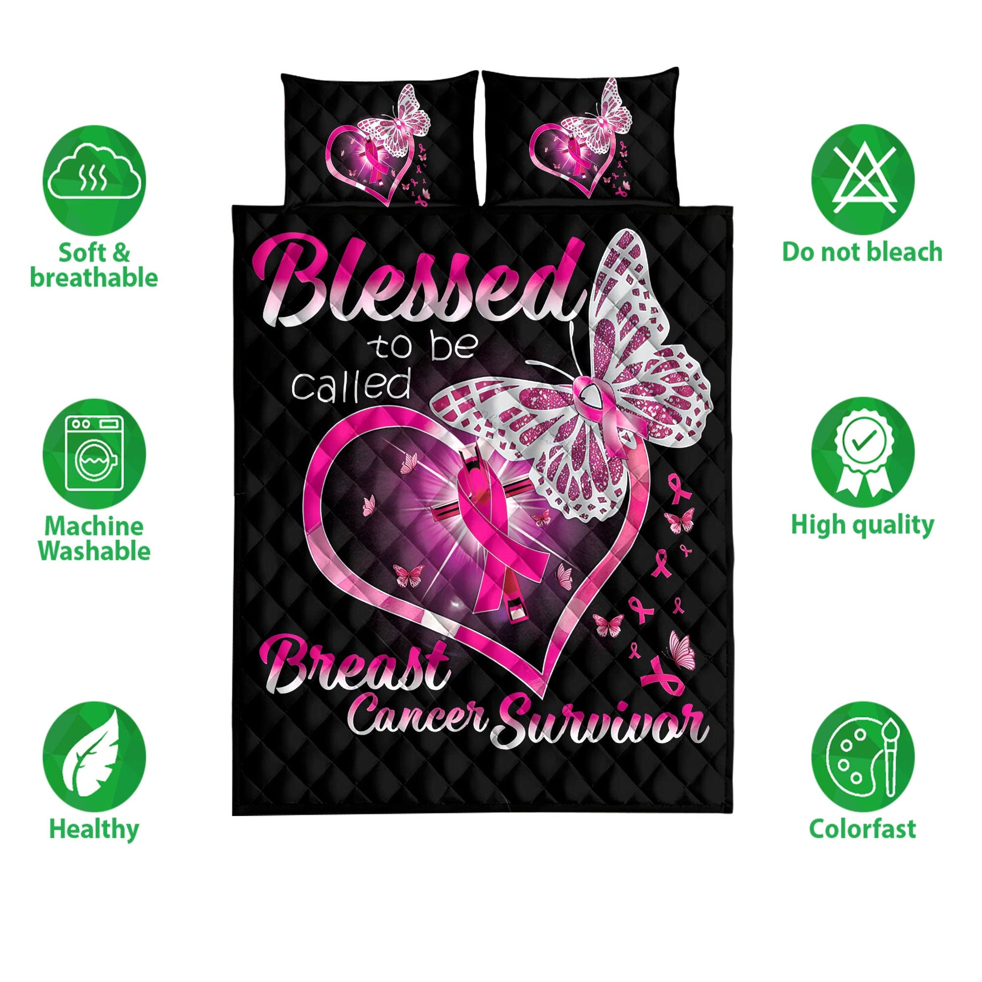 Breast Cancer Quilt Set, Blessed To Be Called Breast Cancer Survivor Quilt Blanket With Pillowcases, Quilt Bedding Set