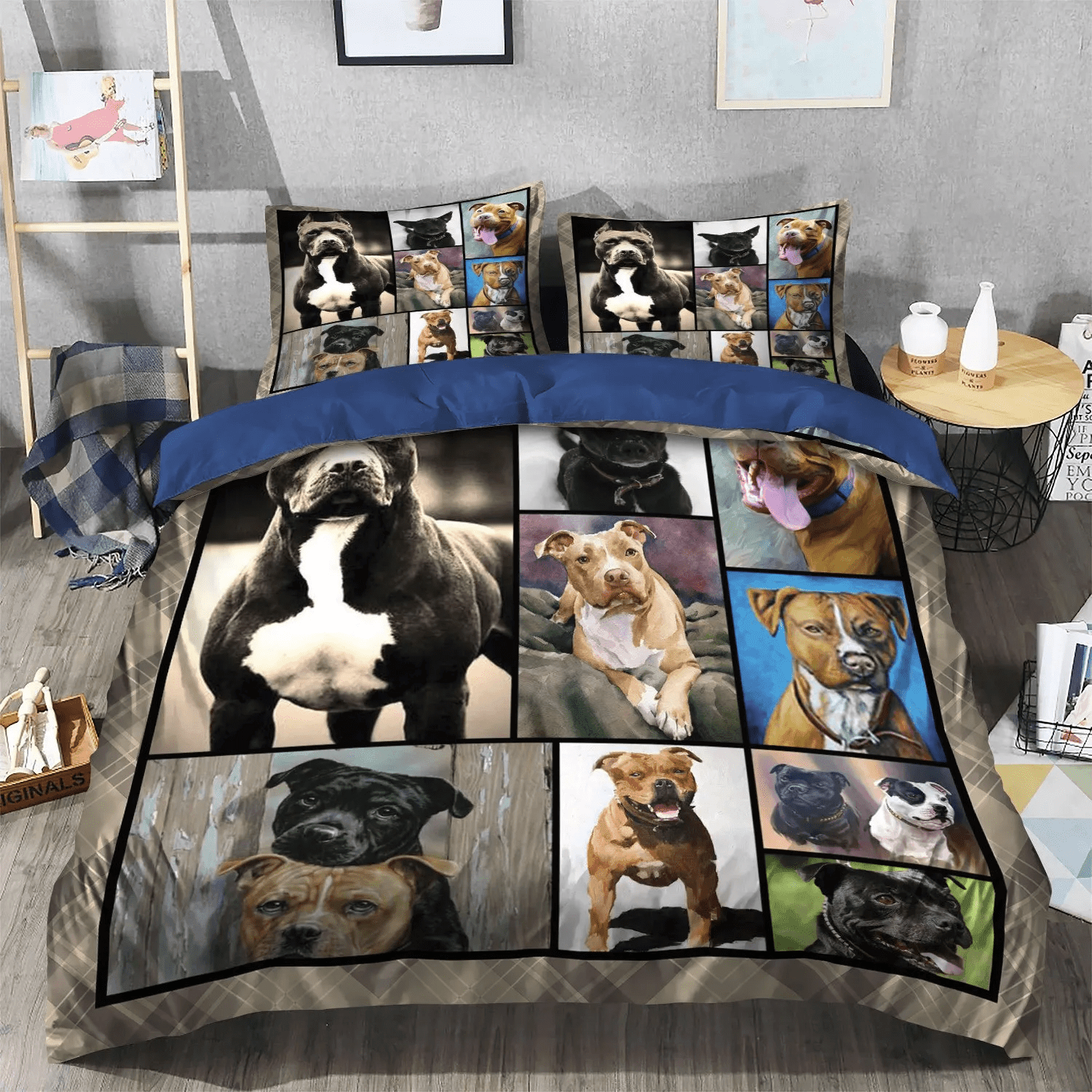 Bull Terrier Gray Soft Duvet Cover Set, Chibi Dog Queen Size Bedding Set, American Pit Bull Terrier Dog Bedding Set, Gifts for Bull Terrier