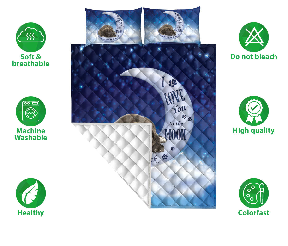 Cane Corso Quilt Set, Cane Corso Dog I Love You To The Moon And Back Dog Puppy Quilt Blanket With Pillowcases, Quilt Bedding Set