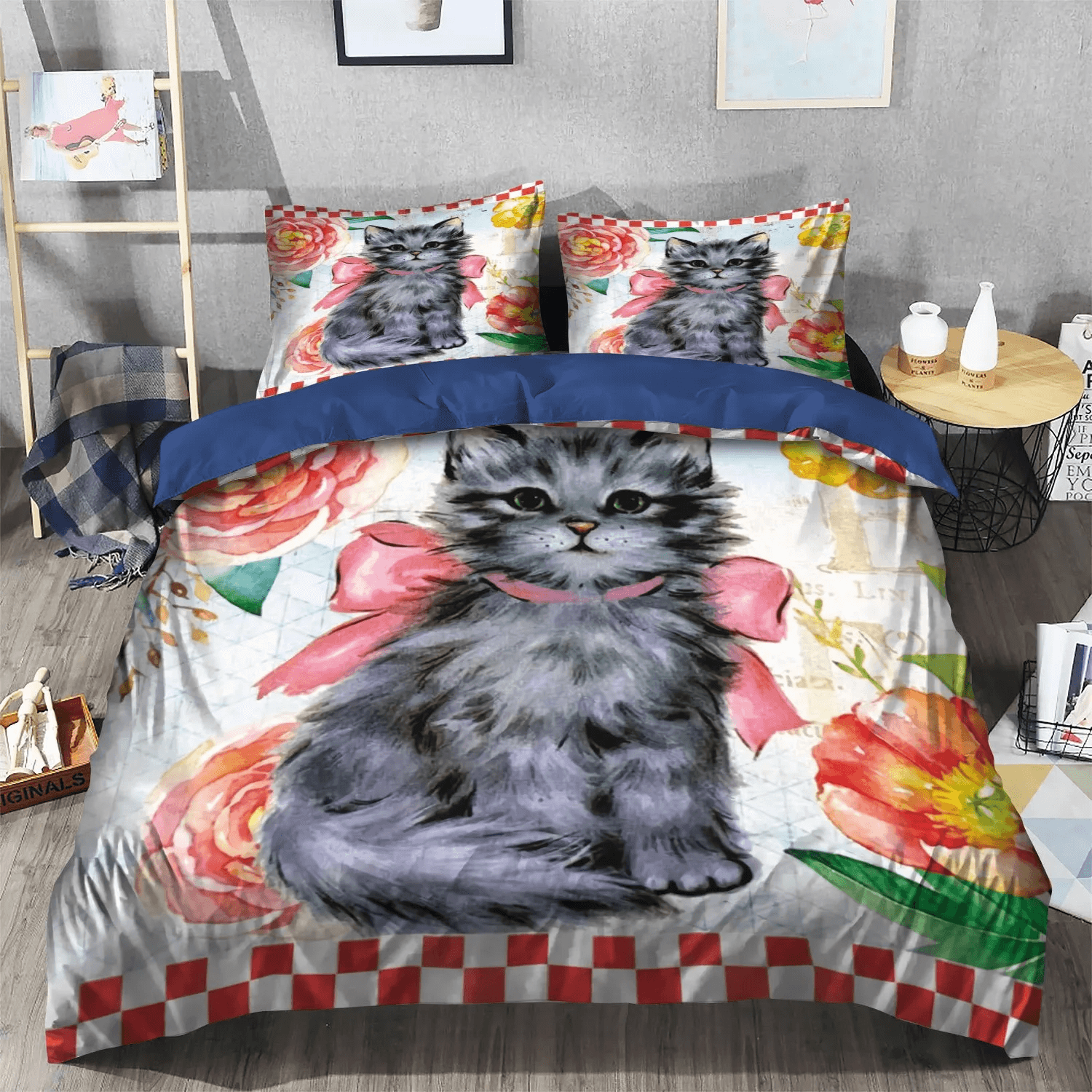 Cat King Size Bedding Set, Cat Paw Soft Duvet Cover Set, Cat Tracks Bedding set, Cat Bedding Set, Gifts for Cat