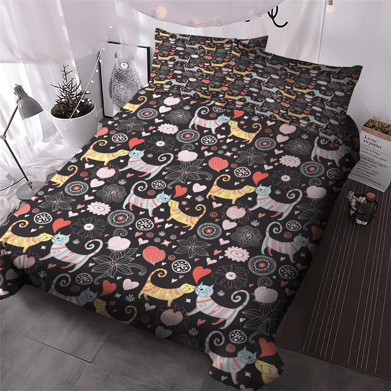 Cat Paw King Size Bedding Set, Cat Soft Duvet Cover Set, Cat Tracks Queen Size Bedding Set, Cat Bedding Set, Gifts for Cat