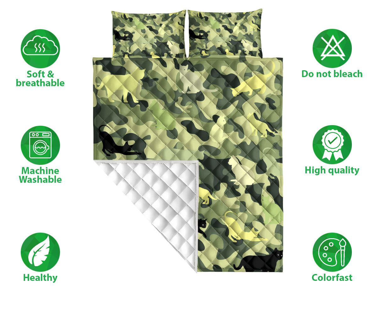 Cat Quilt Set, Funny Cats Green Cat Kitten Quilt Blanket With Pillowcases, Quilt Bedding Set