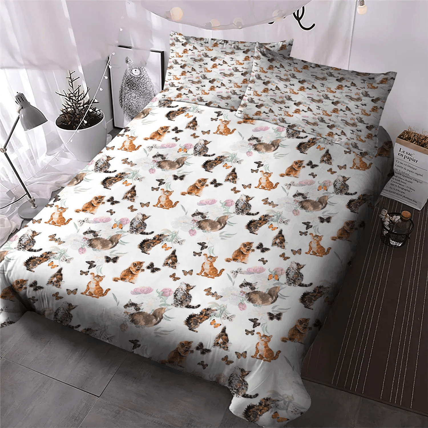 Cat Soft Duvet Cover Set, Cat Tracks Queen Size Bedding Set, Cat Paw Bedding set, Cute Cat Bedding Set, Gifts for Cat