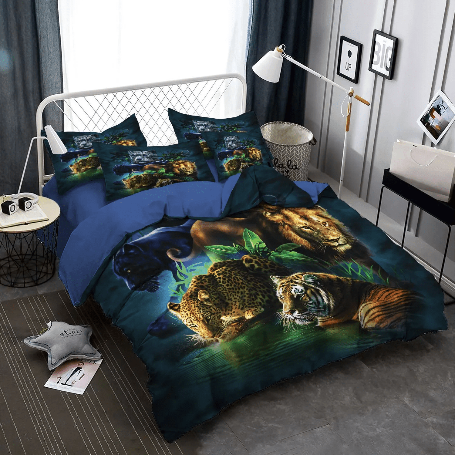 Cat Tracks Queen Size Bedding Set, Cat Bedding set, Cat Paw Soft Duvet Cover Set, Big Cats Jungle Bedding Set, Gifts for Cat