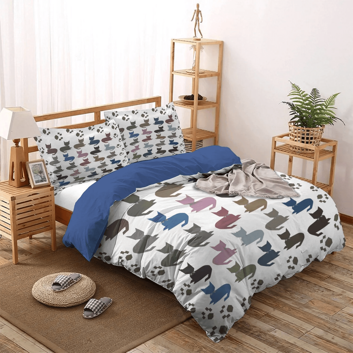 Cat Tracks Soft Duvet Cover Set, Cat Paw King Size Bedding Set, Cat Queen Size Bedding Set, Cats Bedding Set, Gifts for Cat