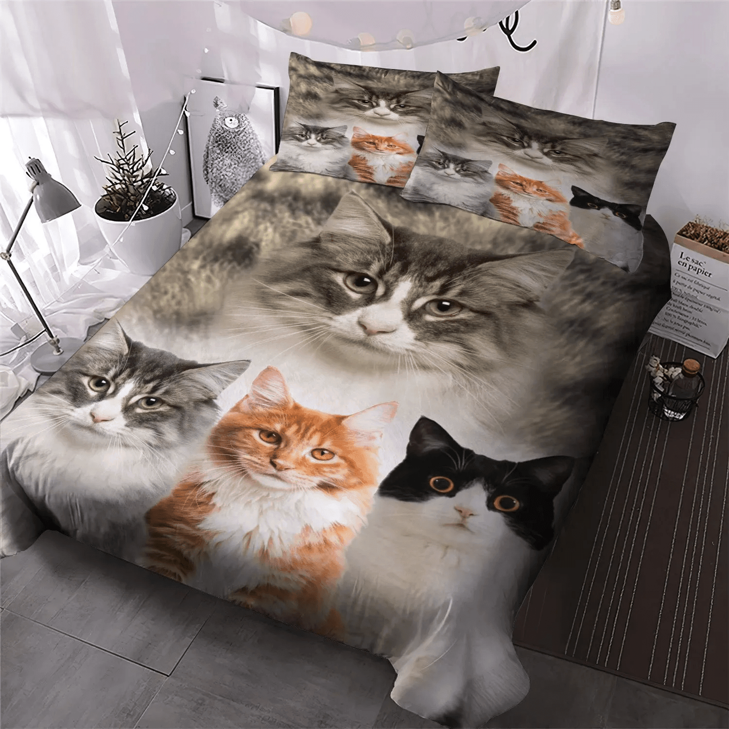 Cat Tracks Soft Duvet Cover Set, Cat Queen Size Bedding Set, Cat Paw King Size Bedding Set, Cats Bedding Set, Gifts for Cat