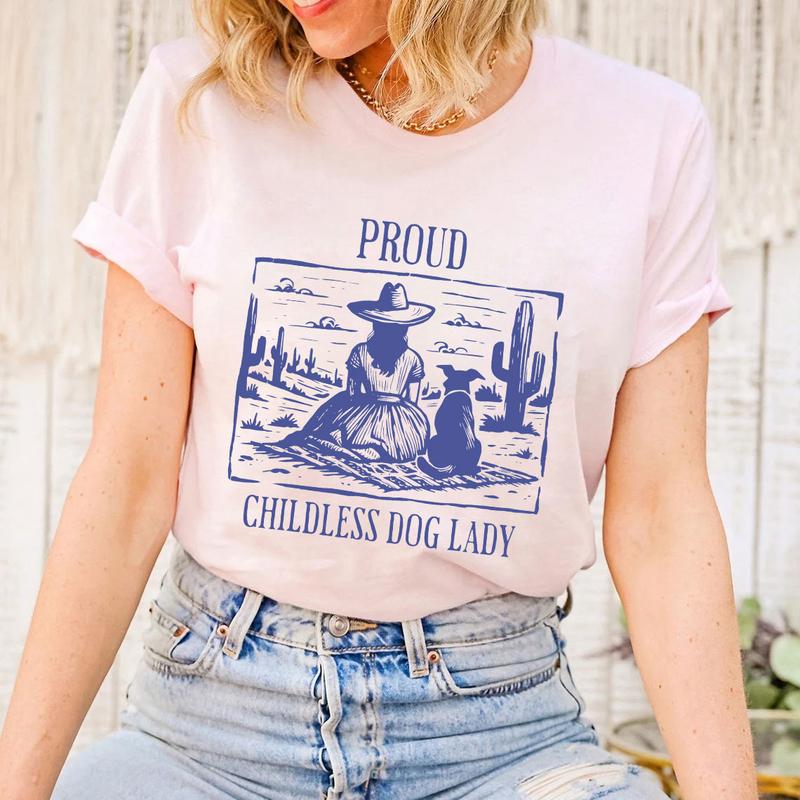 Childless Dog Lady Tee, Proud Dog Mama, Vote Blue Shirt, Kamala Harris, Dog Mom TShirt, Women Rule, Girl Power Top Womenswear Print T-Shirt
