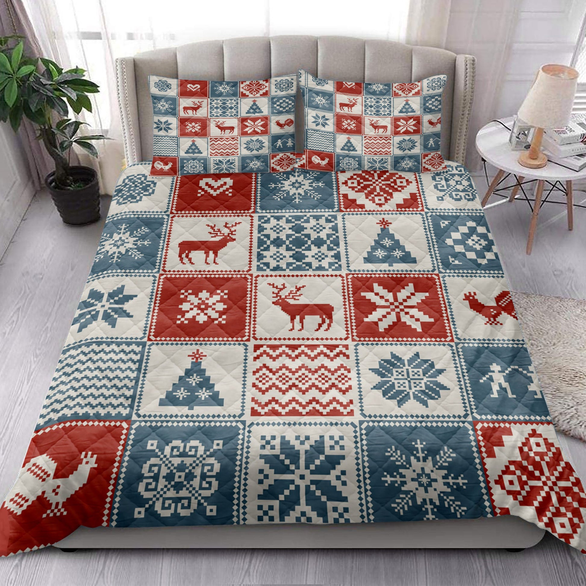 Christmas Quilt Set, Christmas Patchwork Traditional Ornamentalmass Quilt Blanket With Pillowcases, Quilt Bedding Set, Christmas Gift