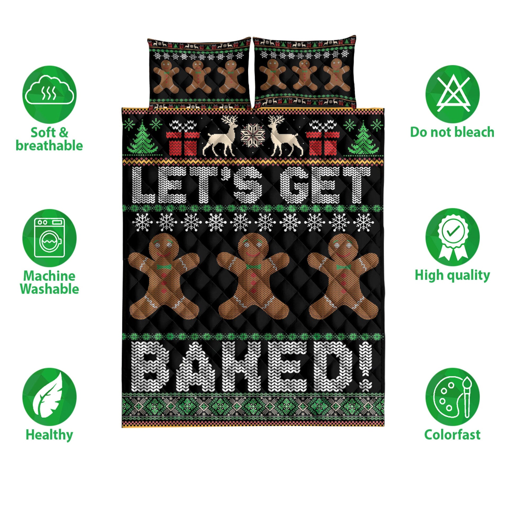Christmas Quilt Set, Let'S Bakedmas Gingerbread Man Quilt Blanket With Pillowcases, Quilt Bedding Set, Christmas Gift