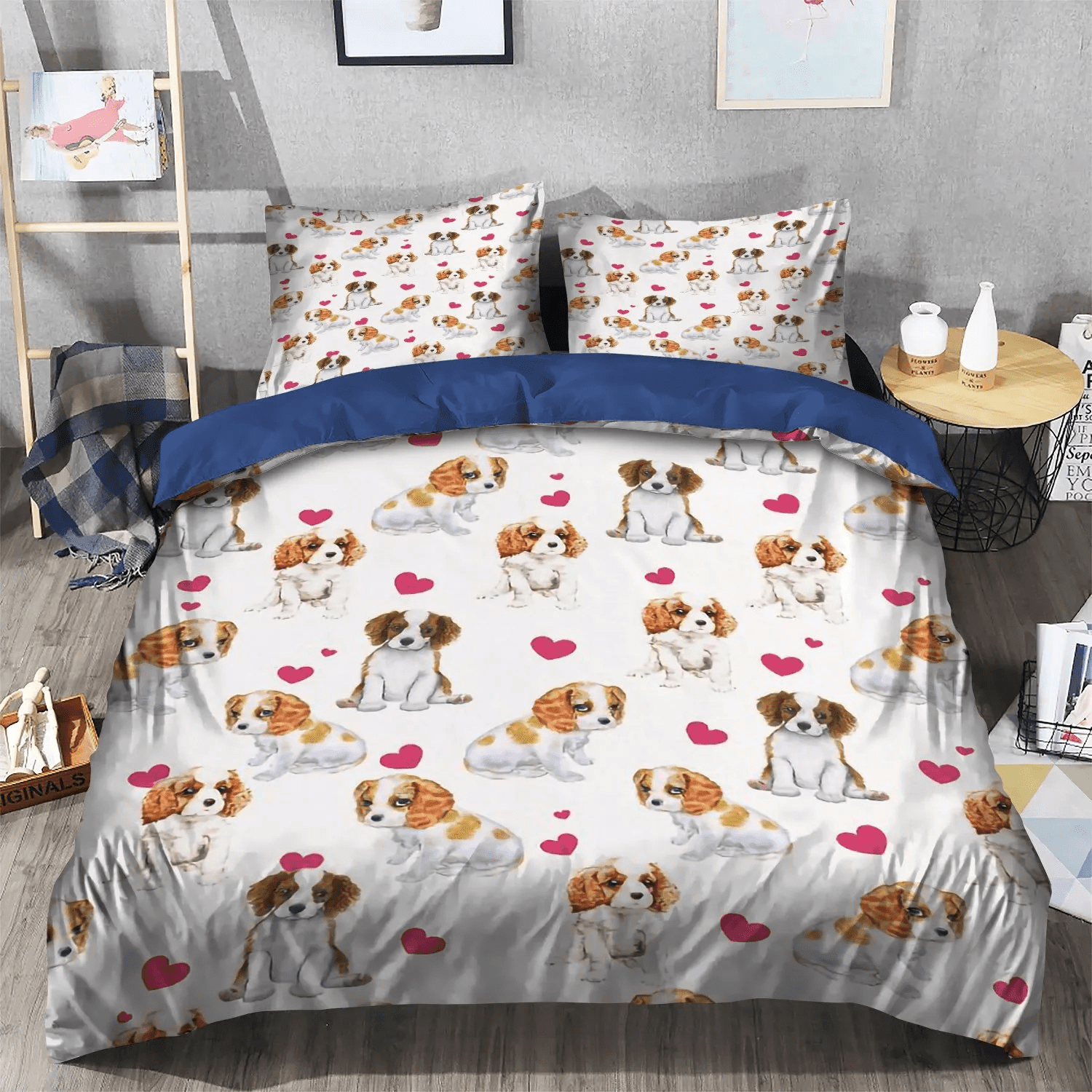Cocker Spaniel Drawing Cuute Queen Size Bedding Set, Mother Mother Soft Duvet Cover Set, Cavalier King Charles Spaniel Mom Bedding Set, Gifts for King