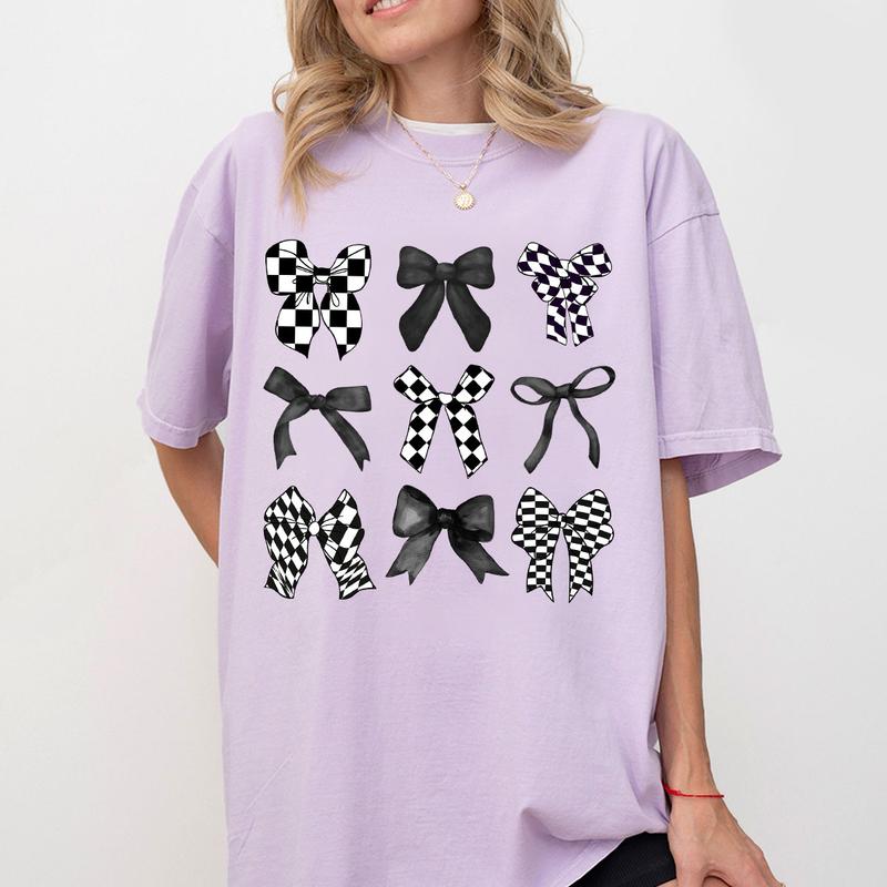 Coquette Checkered Black Bow Shirt, Black Bows Coquette Shirt, Gift for Her, Gift for Mom, T-Shirt for Women, Coquette Bows Checkered T-Shirt, Black B