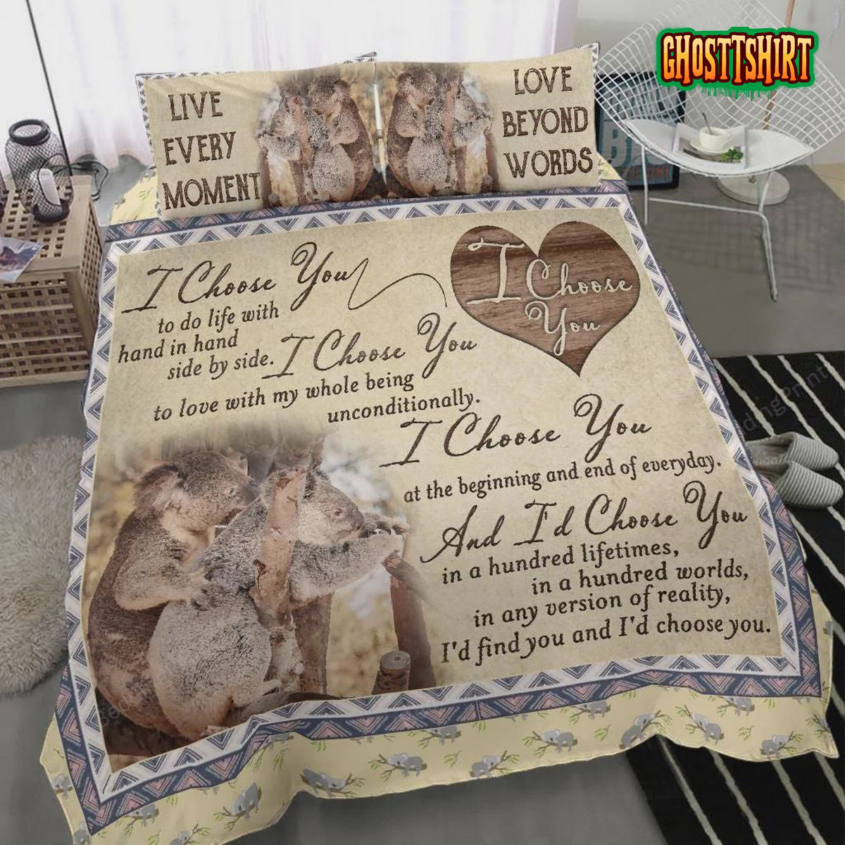 Couple Koala I Choose You Wooden Heart Duvet Cover Bedding Set