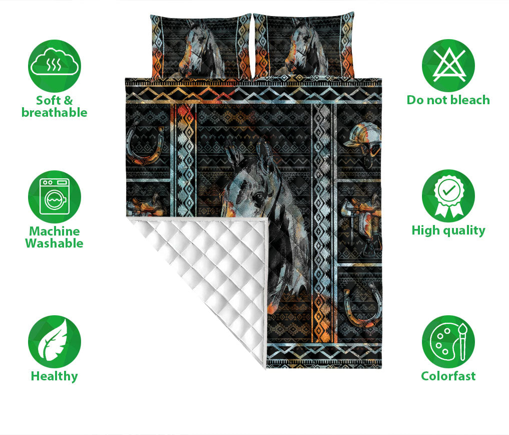 Cowboy Quilt Set, Patchwork Horse Farm Farmer Cowbow Cowgirl Barrel Racing Racer Quilt Blanket With Pillowcases, Quilt Bedding Set