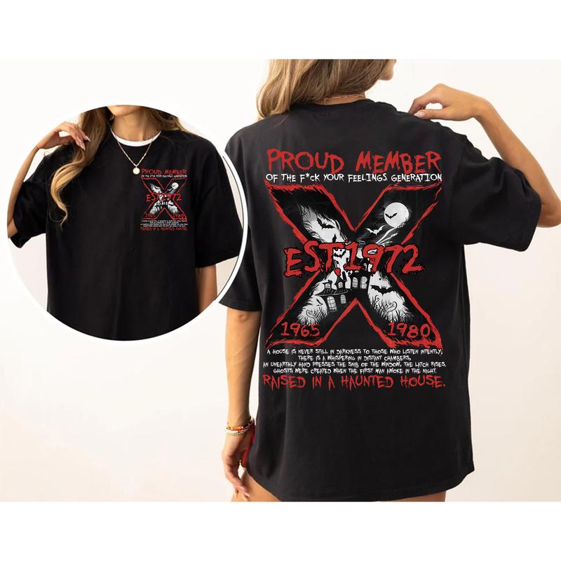 Custom Est.Year 1972 Halloween Raised In A Haunted House GenerationX 2 Side Shirt, GenX T-shirt, Generation X Shirt, Halloween Shirt
