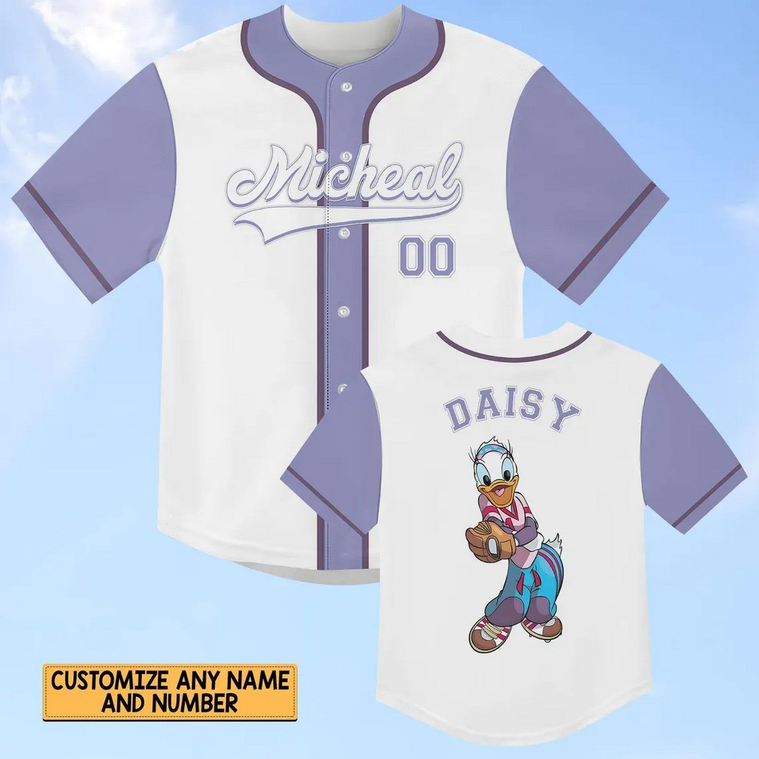 Custom Name Disney Daisy Duck Purple White Baseball Jersey