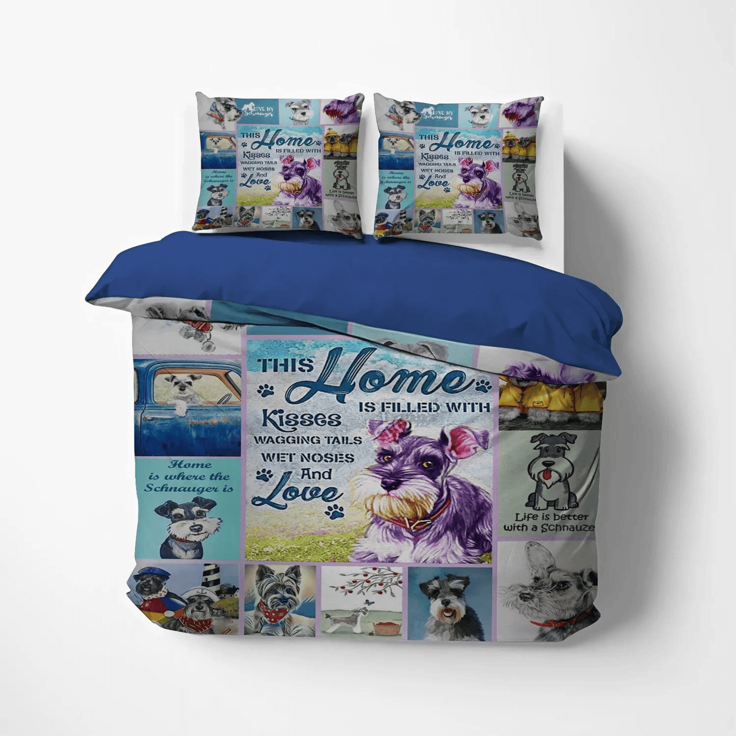 Cute Sleeping Chibi Dog Bedding set, Schnauzer Lover Soft Duvet Cover Set, Doggo Queen Size Bedding Set, Schnauzer Dog Bedding Set, Gifts for Dog