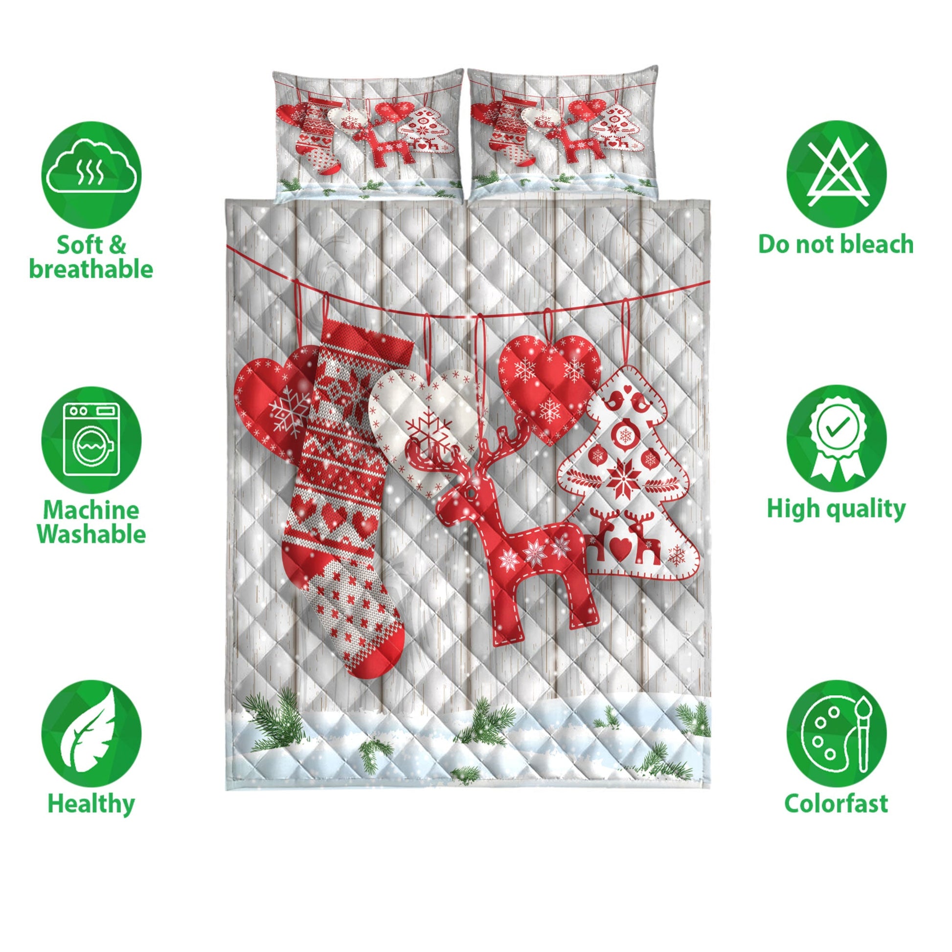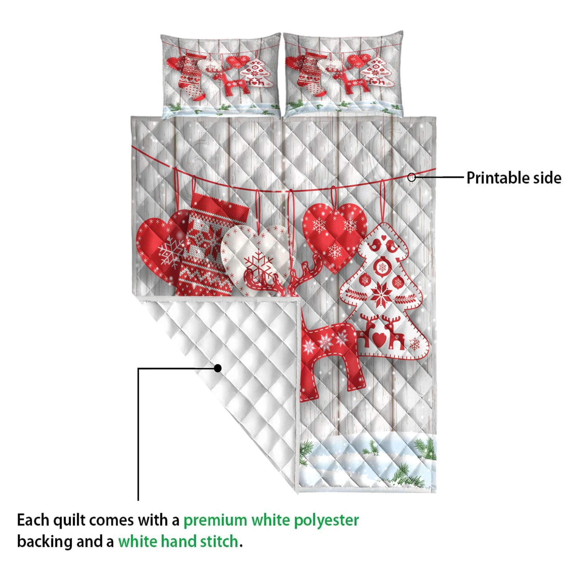 Deer Quilt Set, Christmas Scandinavian Hearts Deer Treesanta Stockingmas Quilt Blanket With Pillowcases, Quilt Bedding Set, Christmas Gift