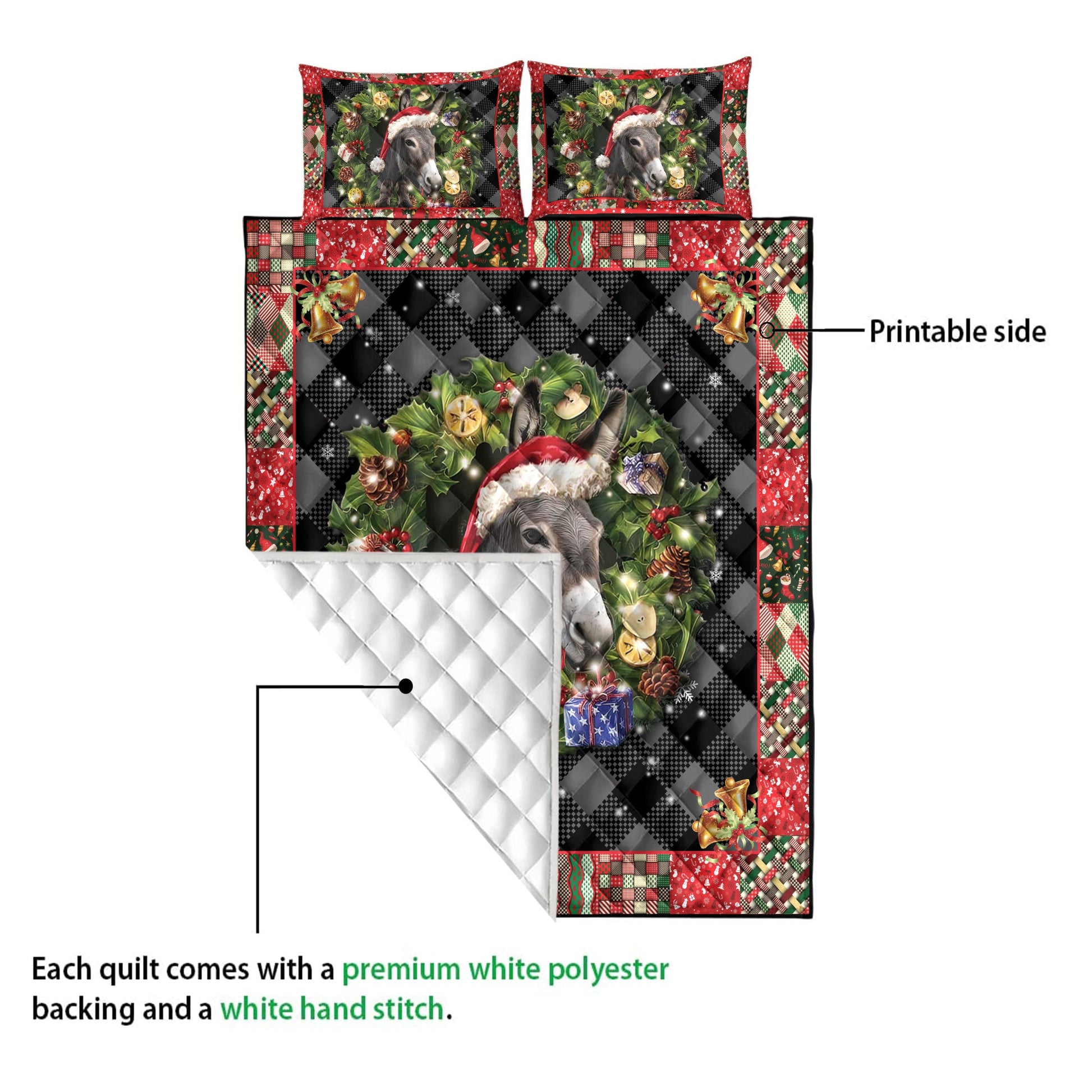Donkey Quilt Set, Donkey Wearingmas Hat Wreat Donkey Quilt Blanket With Pillowcases, Quilt Bedding Set, Christmas Gift