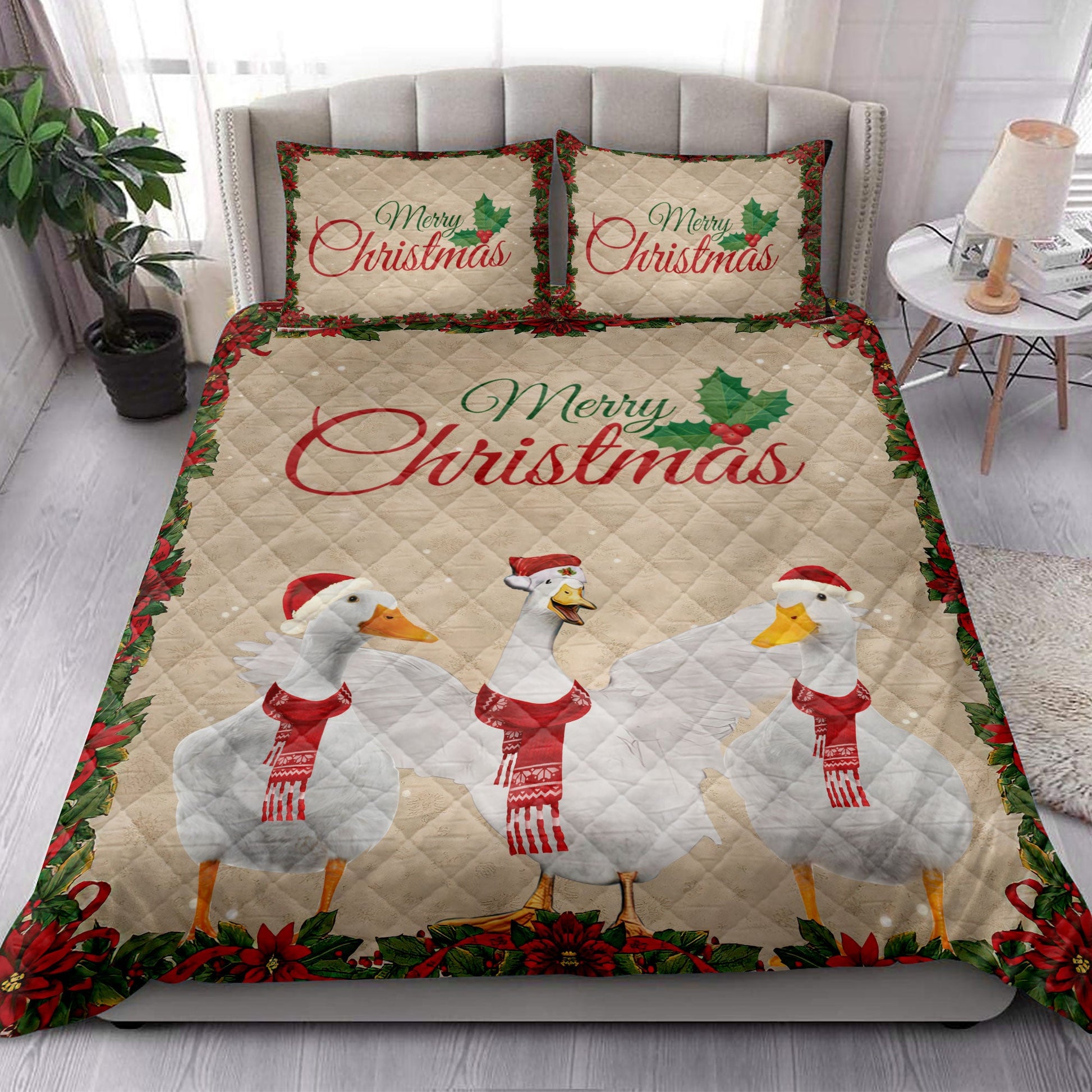 Duck Quilt Set, Merrymas Duck With Santa Hat Duck Quilt Blanket With Pillowcases, Quilt Bedding Set, Christmas Gift