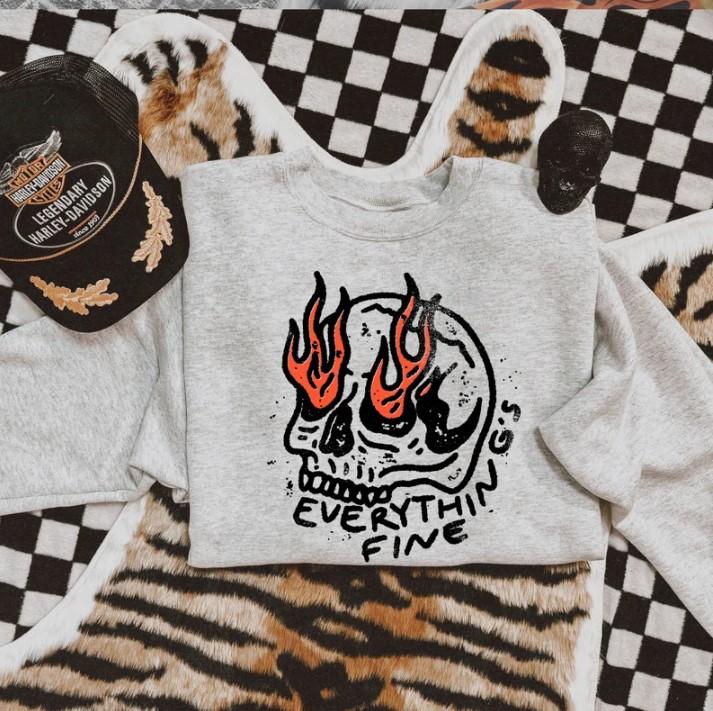 Everything Is Fine Shirt, Skull Shirt, Trendy Graphic, Boho Hippie, Alt Girl