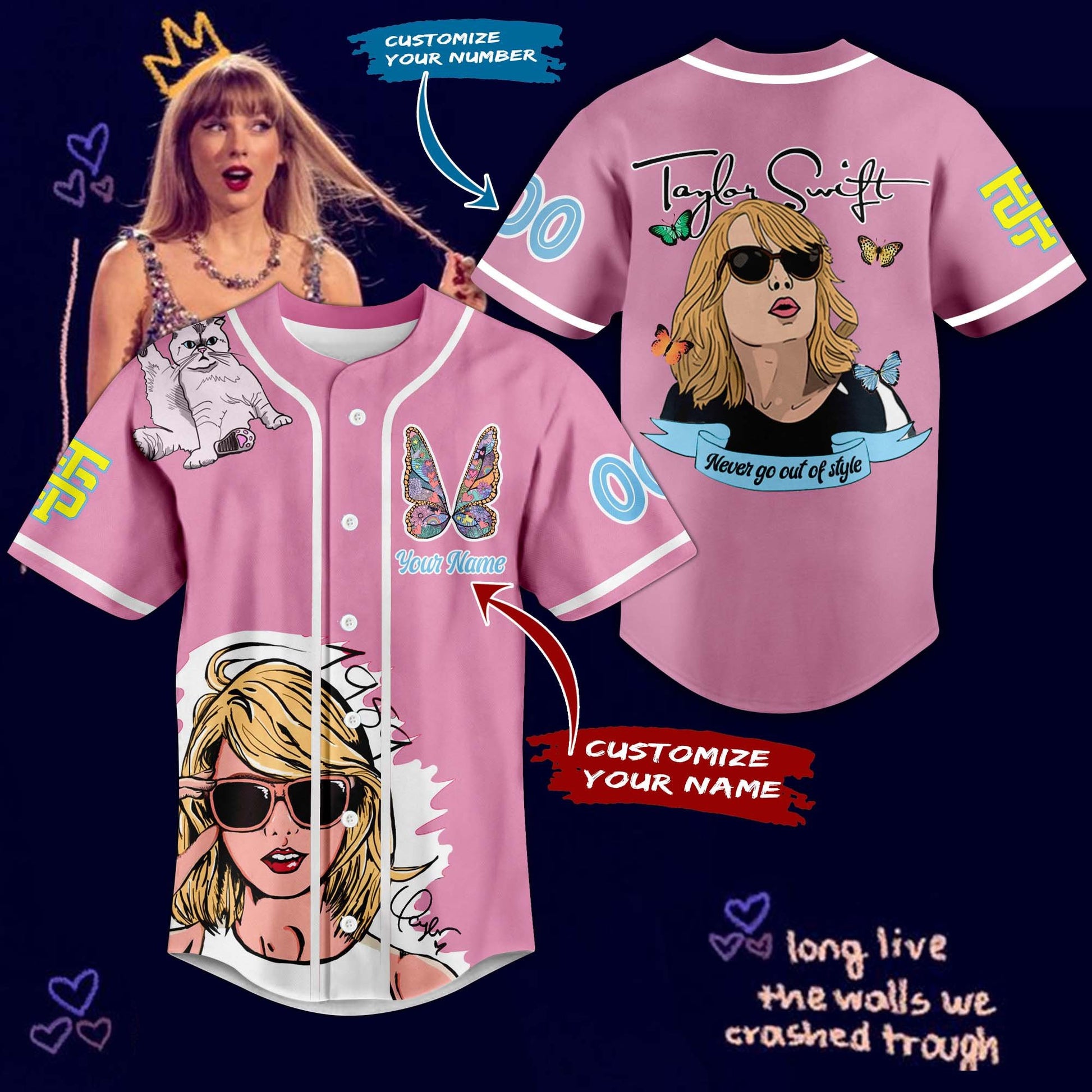Fashionable Pink Taylor Swift Music Custom Baseball Jersey For Swifties