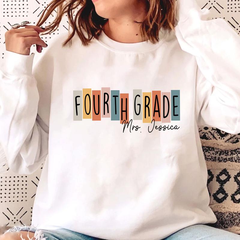 Happy First Day Of School 4th Grade Teacher Shirt, Custom Name Shirt, Personalized Teacher Shirt (Please Inbox In Message), Fourth Grade Teacher Shirt