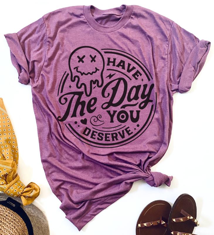 Karma Sarcastic T-shirt, Funny Tee, Have The Day You Deserve Tshirt, Womens T-Shirt Rocker Shirts Humorous Quote Tee Skeleton Tshirt Good Vibes, Graph