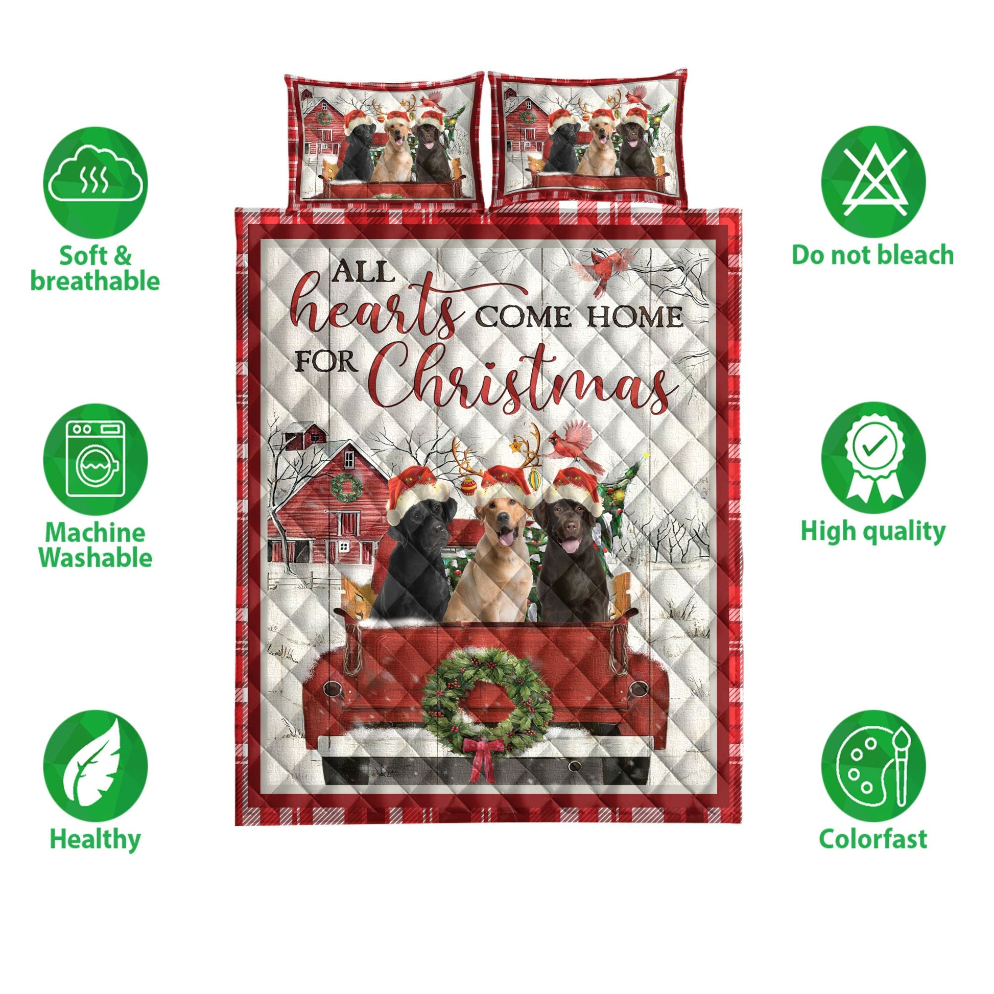 Labrador Retriever Quilt Set, Labrador With Truckmas Tree Snowflake Cozy Farmho Use Quilt Blanket With Pillowcases, Quilt Bedding Set, Christmas Gift