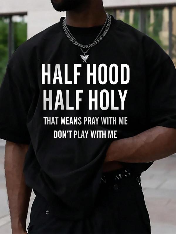 Men's Casual Letter Print Round Neck Tee, Summer Clothes, Graphic Tees, Regular Fit Streetwear Short Sleeve Crew Neck T-Shirt for Daily Wear, Casual F