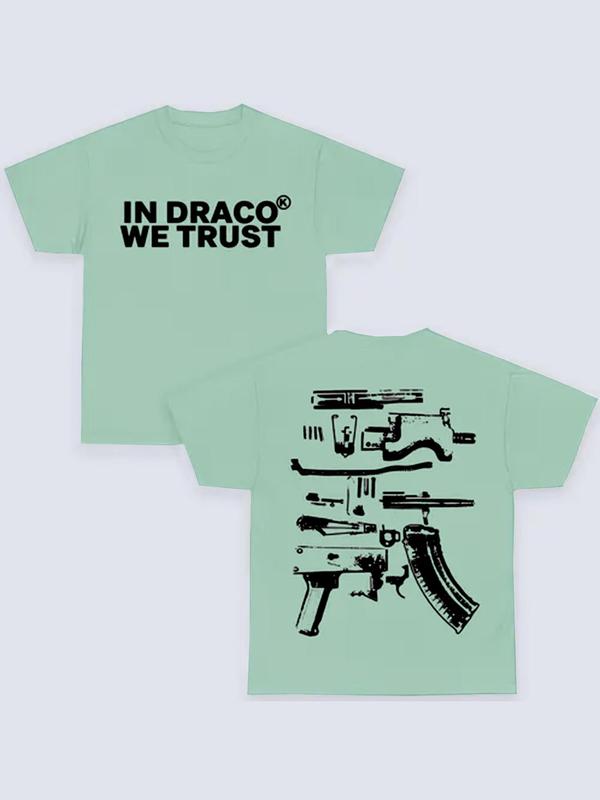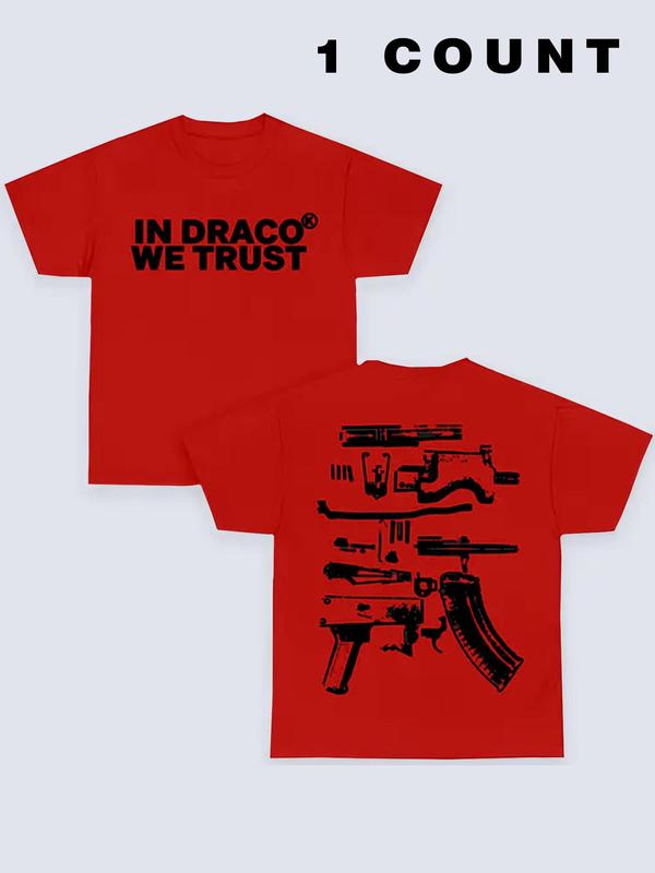 Men's Letter Graphic Print Round Neck Tee, Regular Fit Casual Drop Shoulder Short Sleeve T-shirt, Men's Summer Top for Daily Wear, Black Girl Outfits,