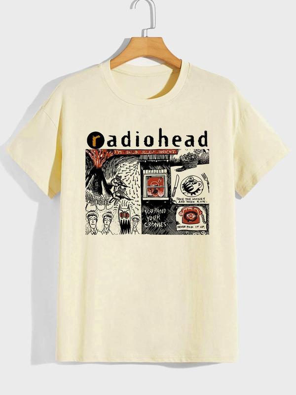 Men's Letter & Graphic Print Round Neck Tee, Regular Fit Casual Short Sleeve T-shirt, Men's Summer Top for Daily Wear