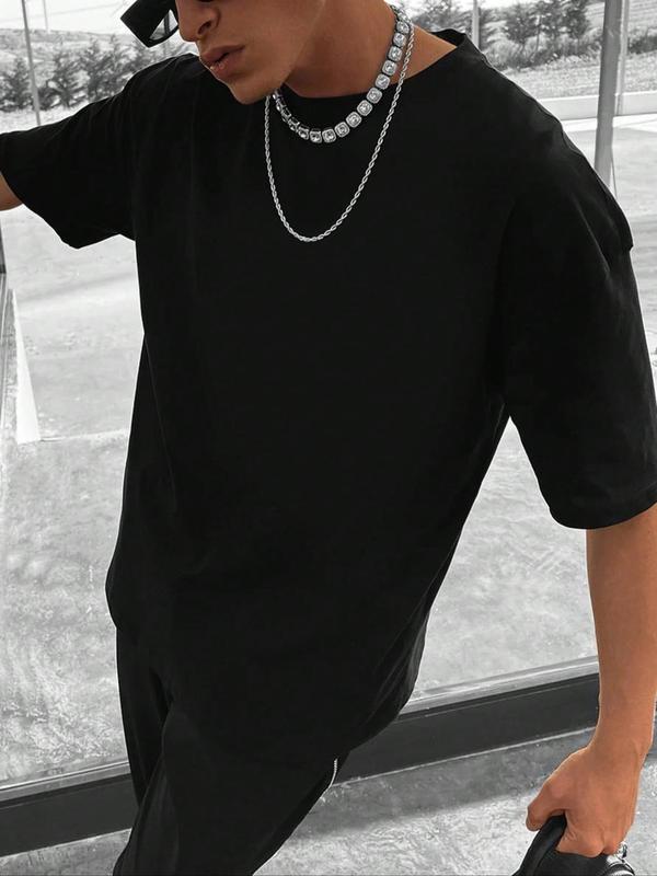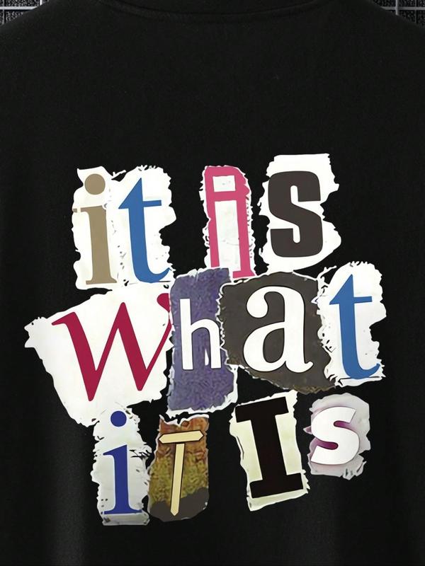 Men's Plus Size Letter Graphic Print Round Neck Tee, Regular Fit Casual Short Sleeve T-shirt, Men's Plus Size Summer Clothing for Daily Wear
