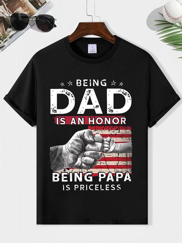 Men's Regular Fit Colorblock & Letter Print Tee, Cozy Breathable Round Neck Short Sleeve T-Shirt, Casual Simple Style for Men’s Daily Wear