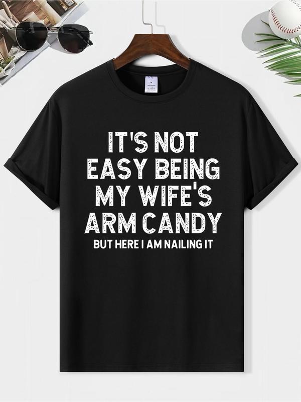 Men's Regular Fit Letter Graphic Print Round Neck Short Sleeve Tee Summer Clothes, Casual Streetwear Soft Comfortable Crewneck T-shirt for Summer, Men