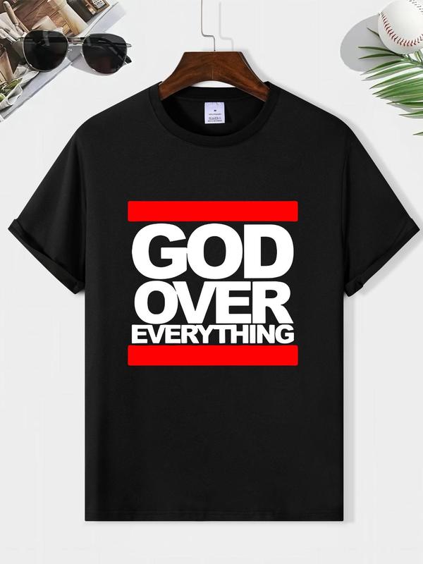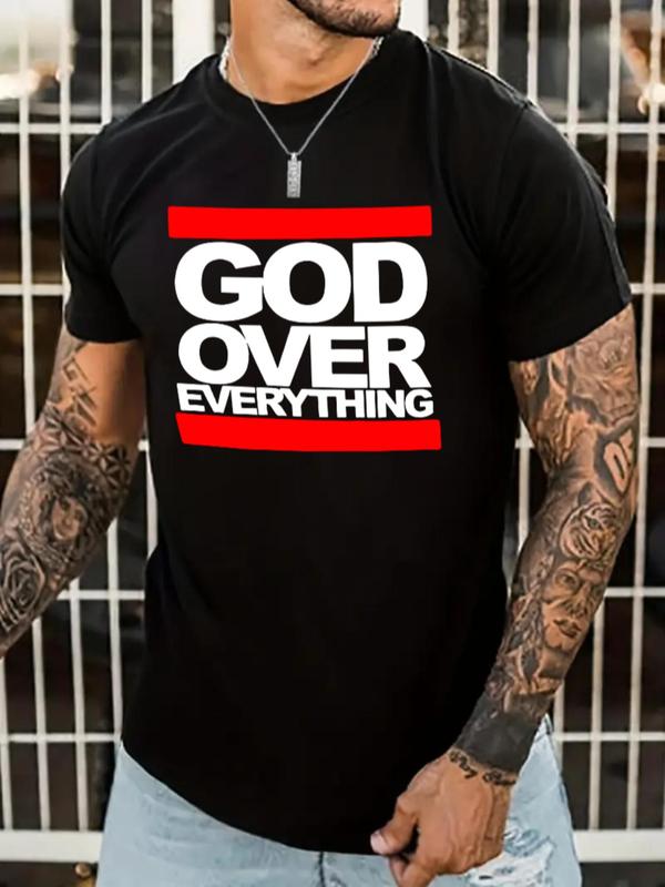 Men's Regular Fit Letter Print Round Neck Tee, Fashion Casual Summer Short Sleeve Crew T-Shirt, Versatile Men's Staple for Everyday Wear