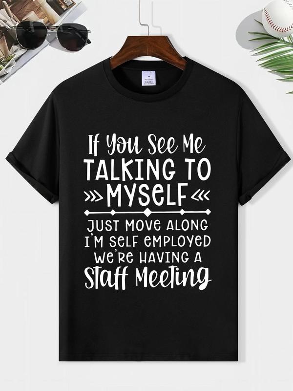 Men's Summer Letter Print Round Neck Tee, Casual Street Short Sleeve Crew T-shirt, Regular Fit for Daily Outdoor Wear, Trendy 2024 Outfits