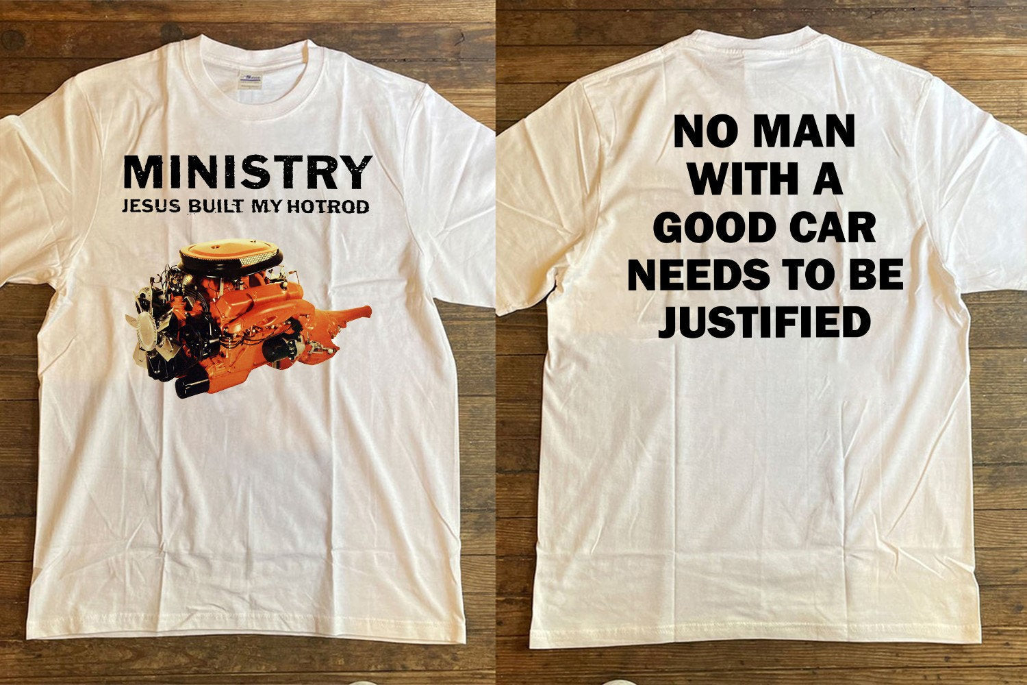 Ministry Album T-Shirt - Jesus Built My Hotrod Design