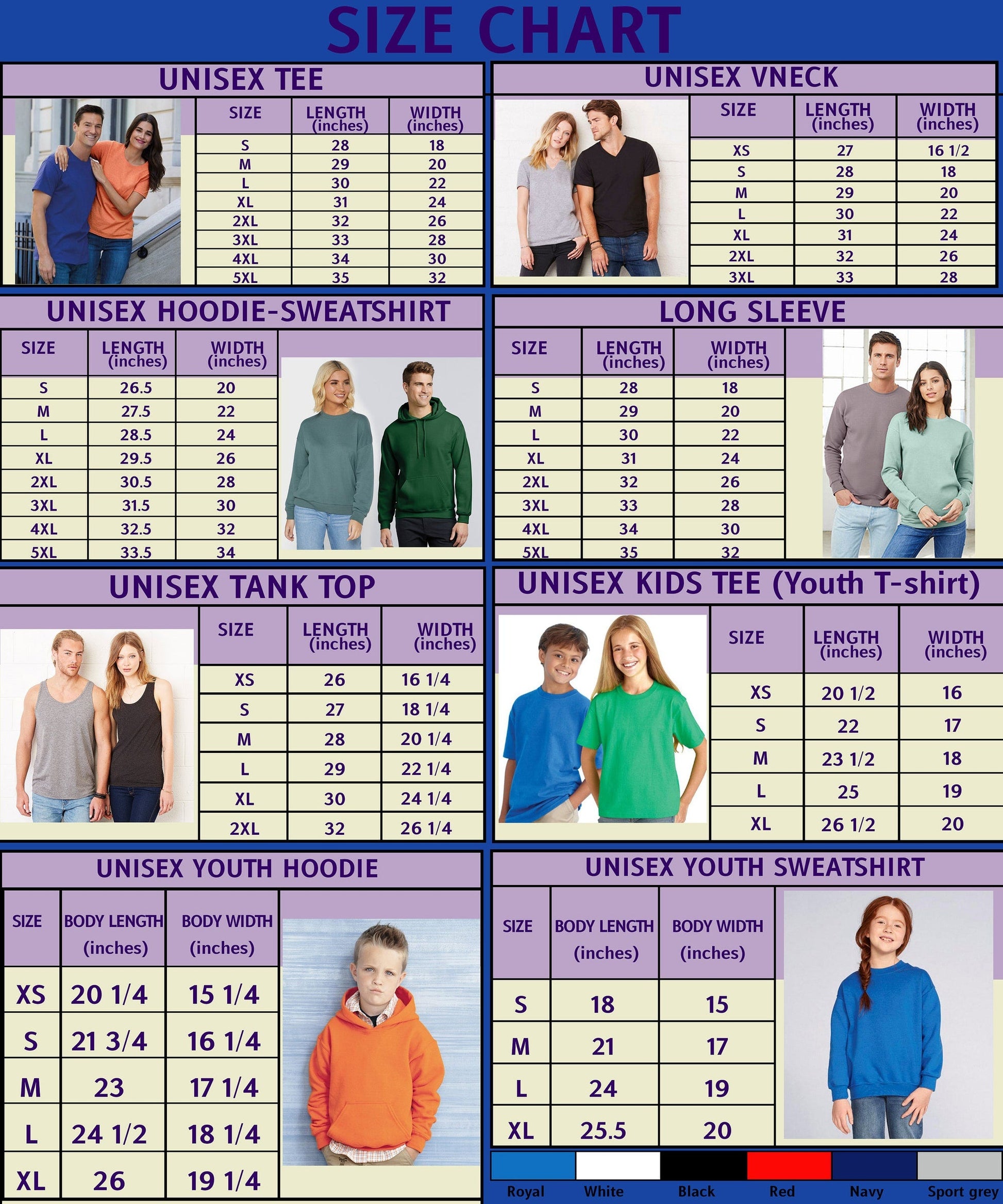 - Check the color and size chart above.