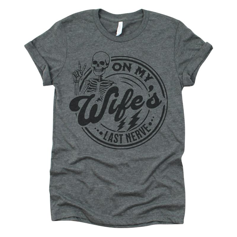 On My Wifes's Last Nerve T-Shirt Funny Couples Tshirt Sarcastic Fun Tee Soft Print Tshirt Sublimation Print Tee Gift For Husband Shirt Gift For Wife T