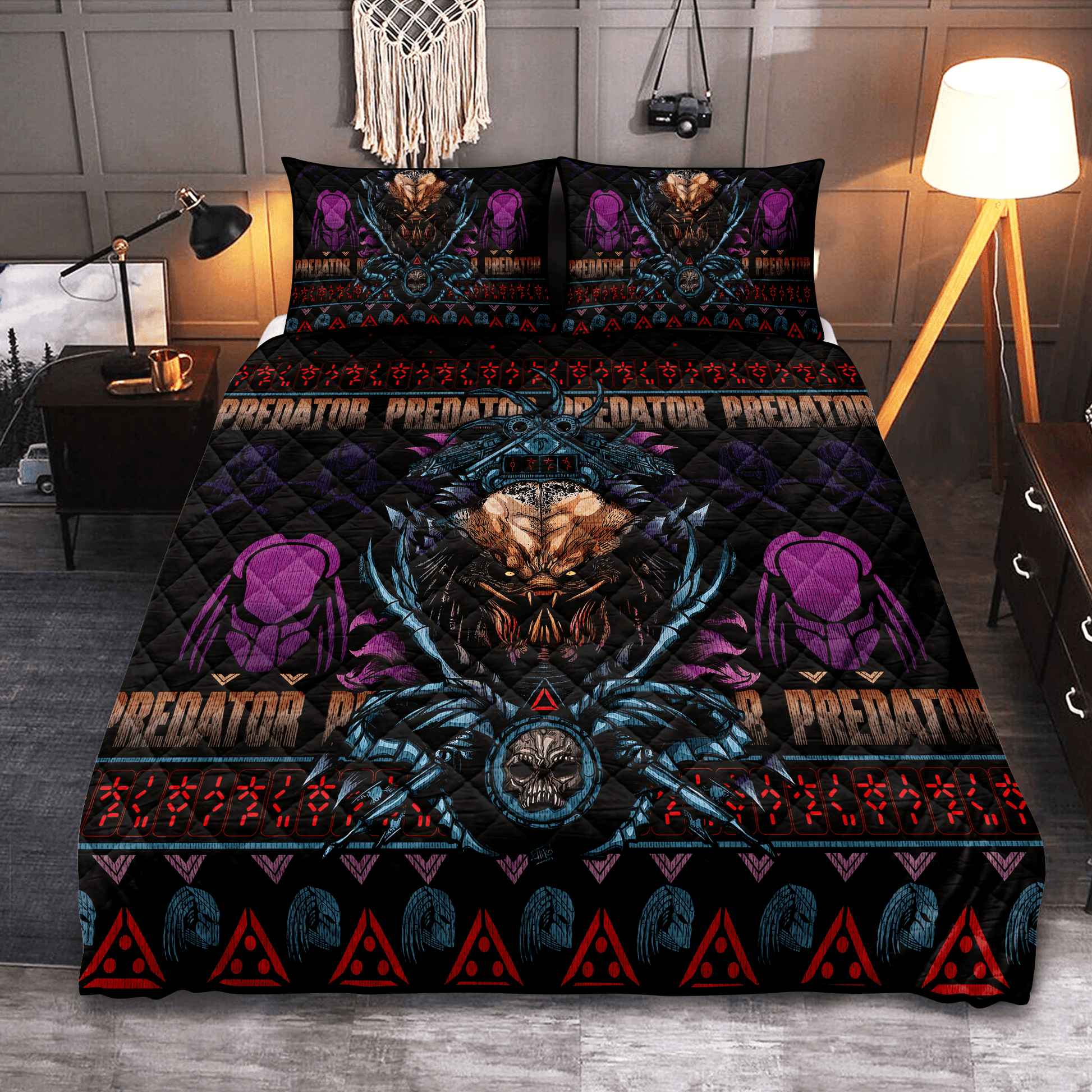 Personalized Alien Predator Christmas Theme 3-pc Quilt Bedding Set Alien