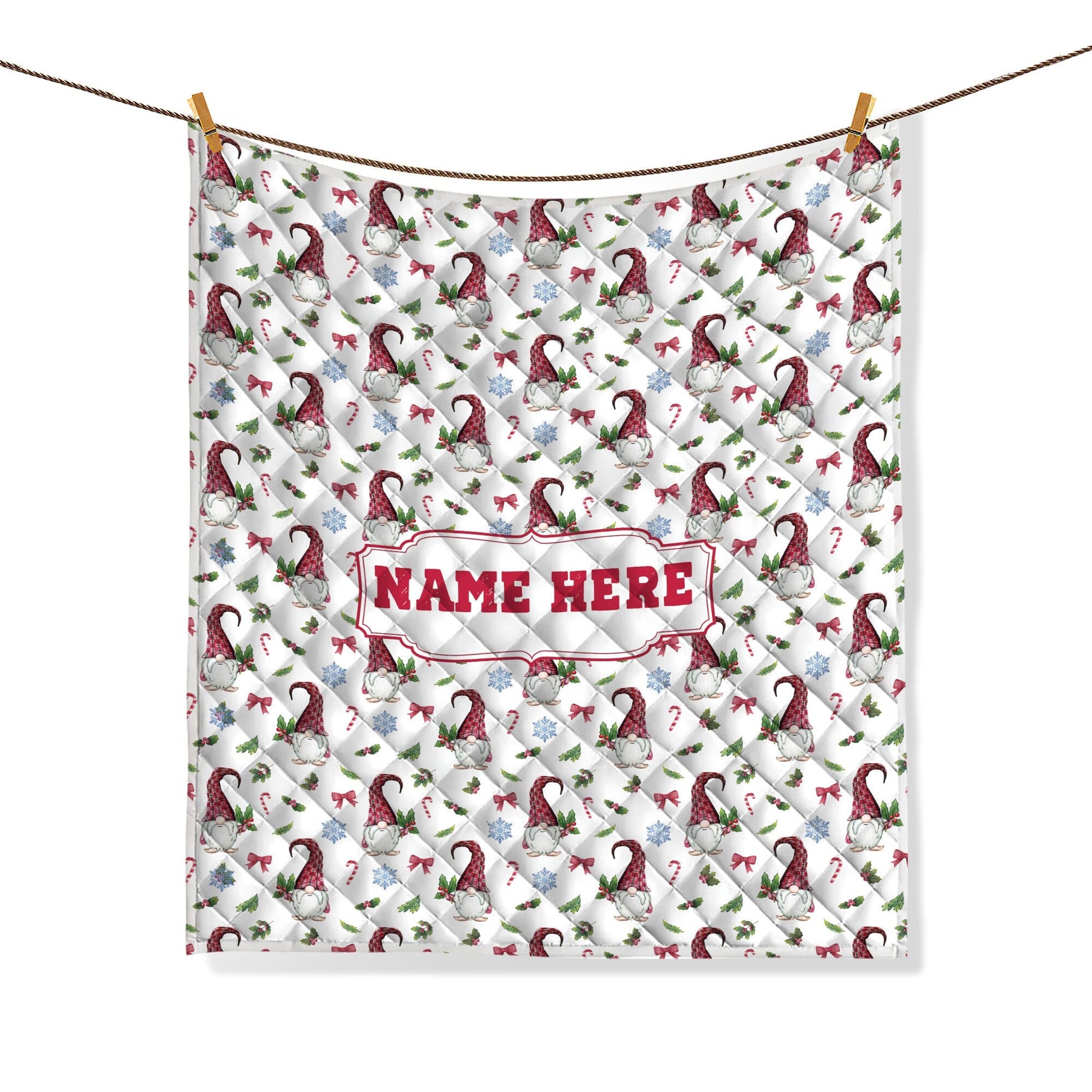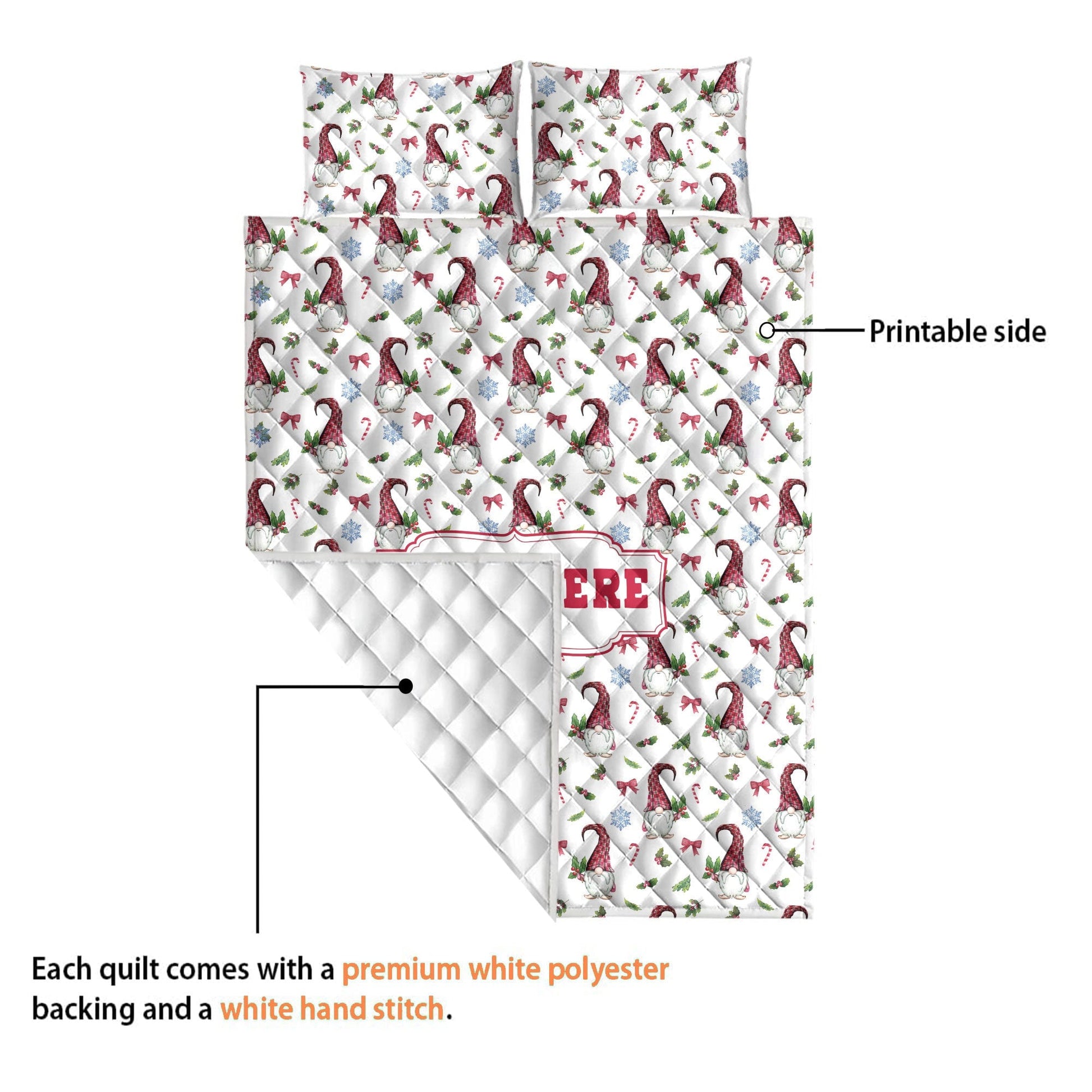 Personalized Christmas Gnome Quilt Set, Xmas Gnomes Pattern Quilt Blanket & Pillowcases, Custom Name Quilt Bedding Set, Christmas Gift