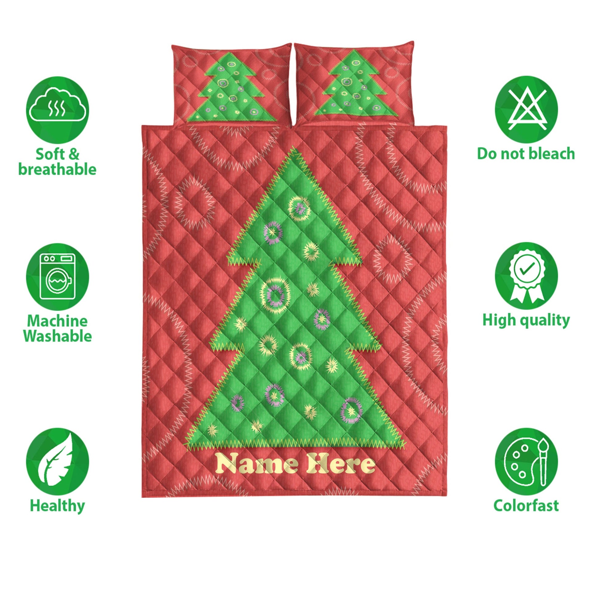 Personalized Christmas Quilt Set, Christmas Tree Patchwork Style Quilt Blanket With Pillowcases, Custom Name Quilt Bedding Set, Christmas Gift