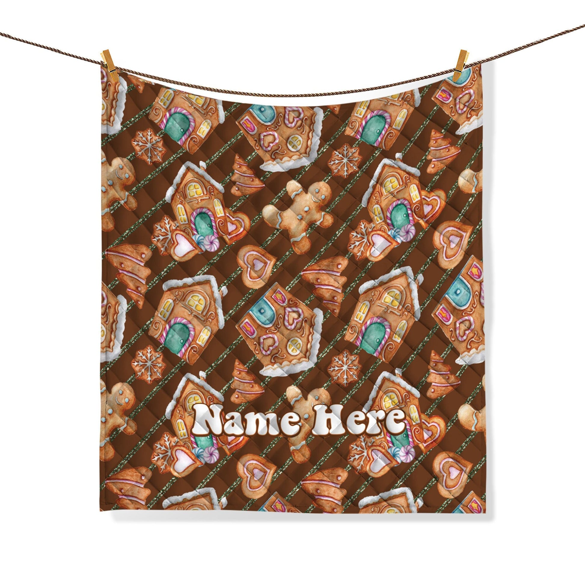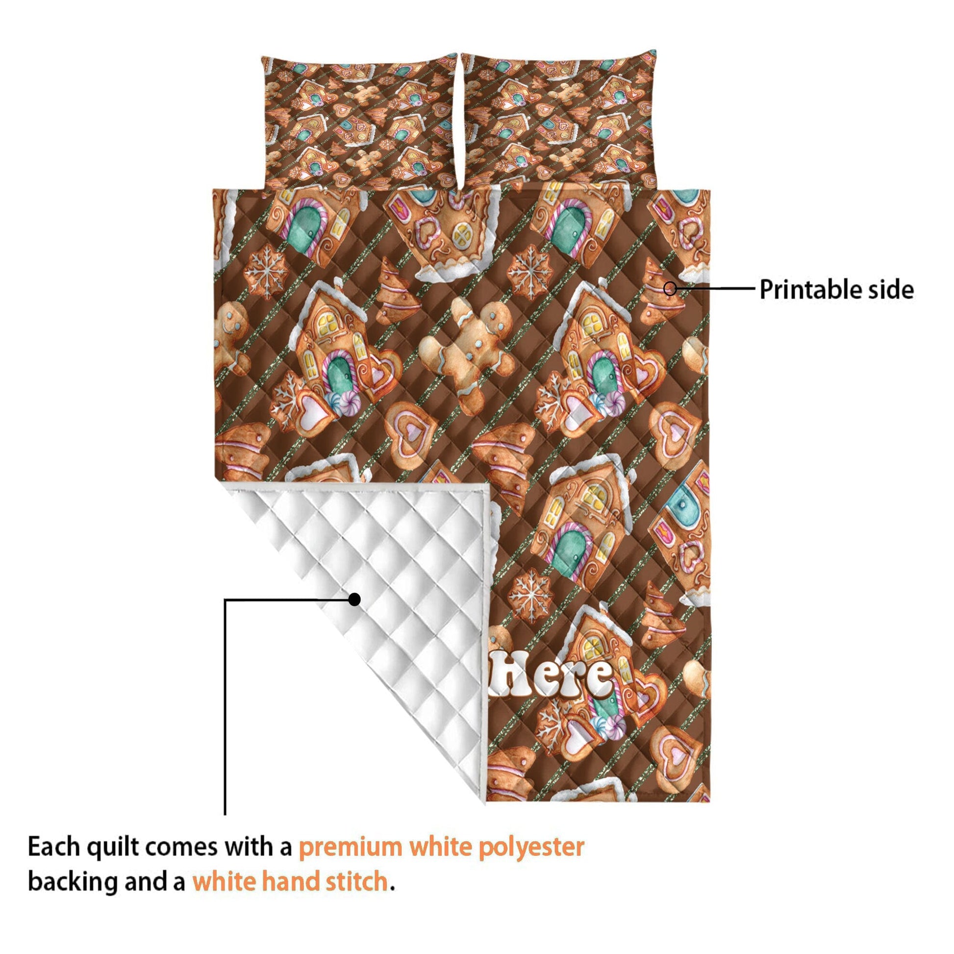 Personalized Christmas Quilt Set, Xmas Gingerbread Quilt Blanket & Pillowcases, Custom Name Quilt Bedding Set, Bedspread, Christmas Gift