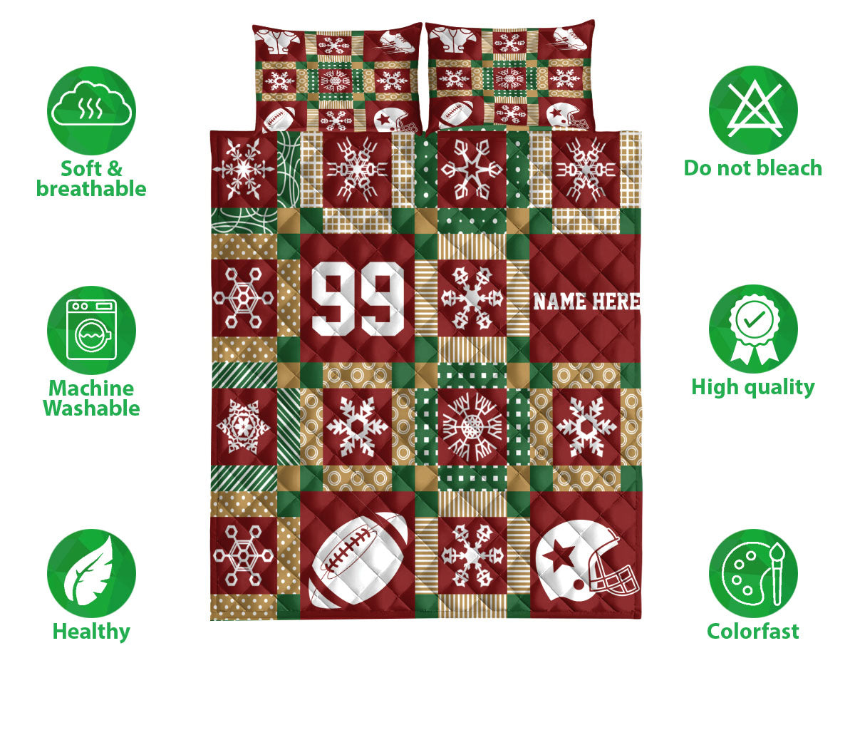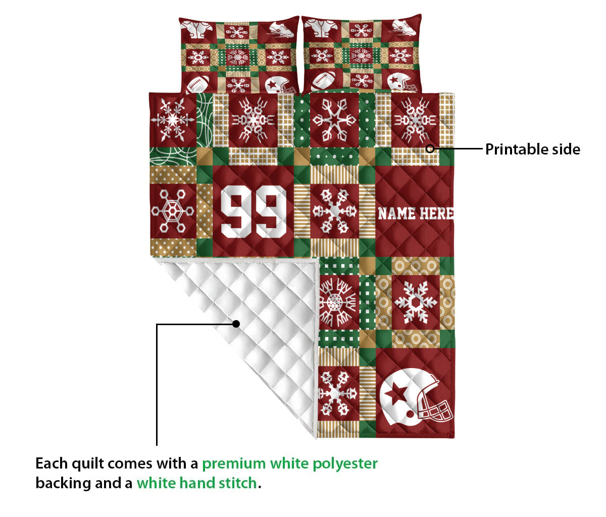 Personalized Football Quilt Set, Christmas Patchwork Football Xmas Quilt Blanket With Pillowcases, Quilt Bedding Set