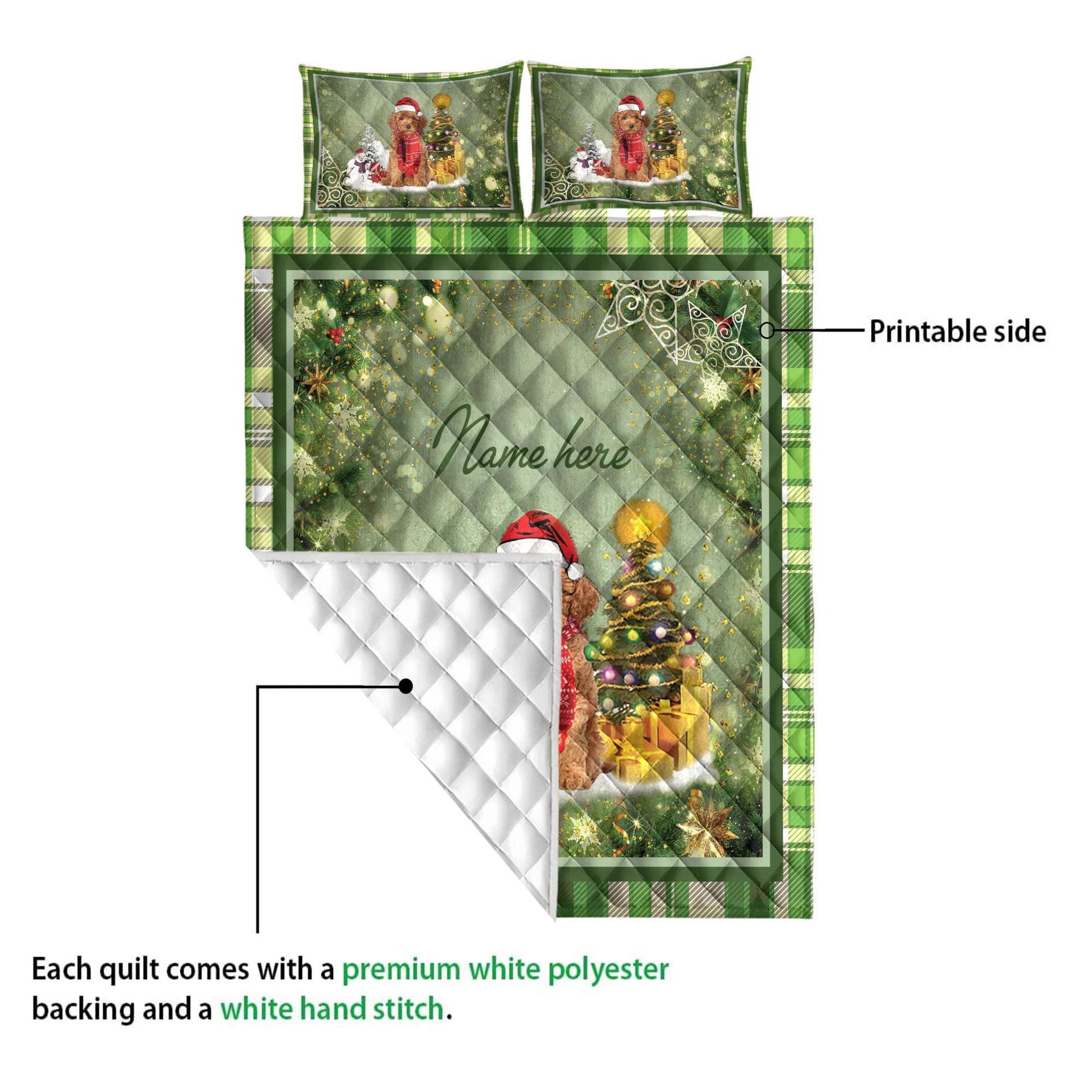 Personalized Goldendoodle Quilt Set, Goldendoodlemas Tree String Lights Quilt Blanket With Pillowcases, Custom Name Quilt Bedding Set, Christmas Gift