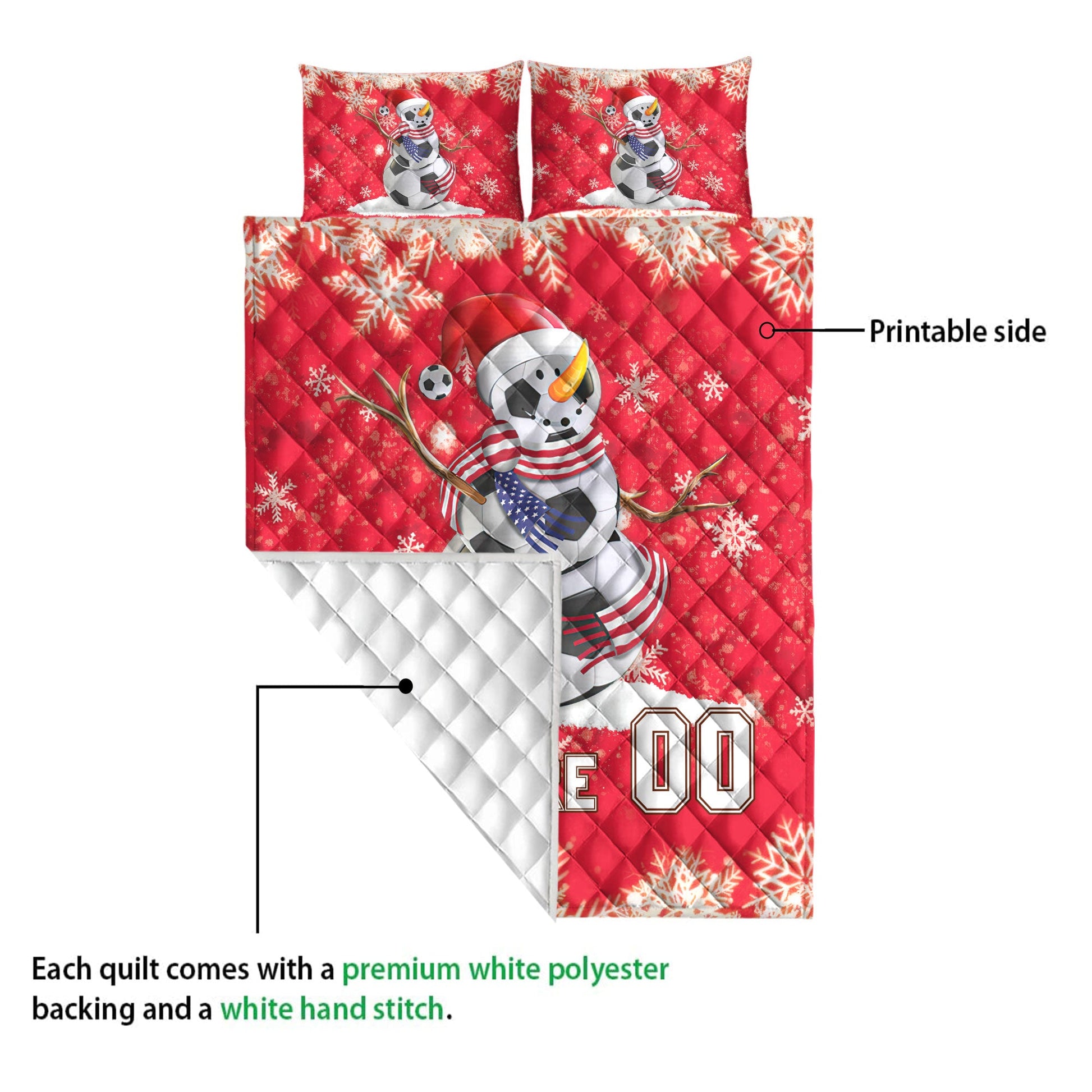 Personalized Soccer Quilt Set, Soccer Snowmanmas Quilt Blanket With Pillowcases, Custom Name and Number Quilt Bedding Set, Christmas Gift