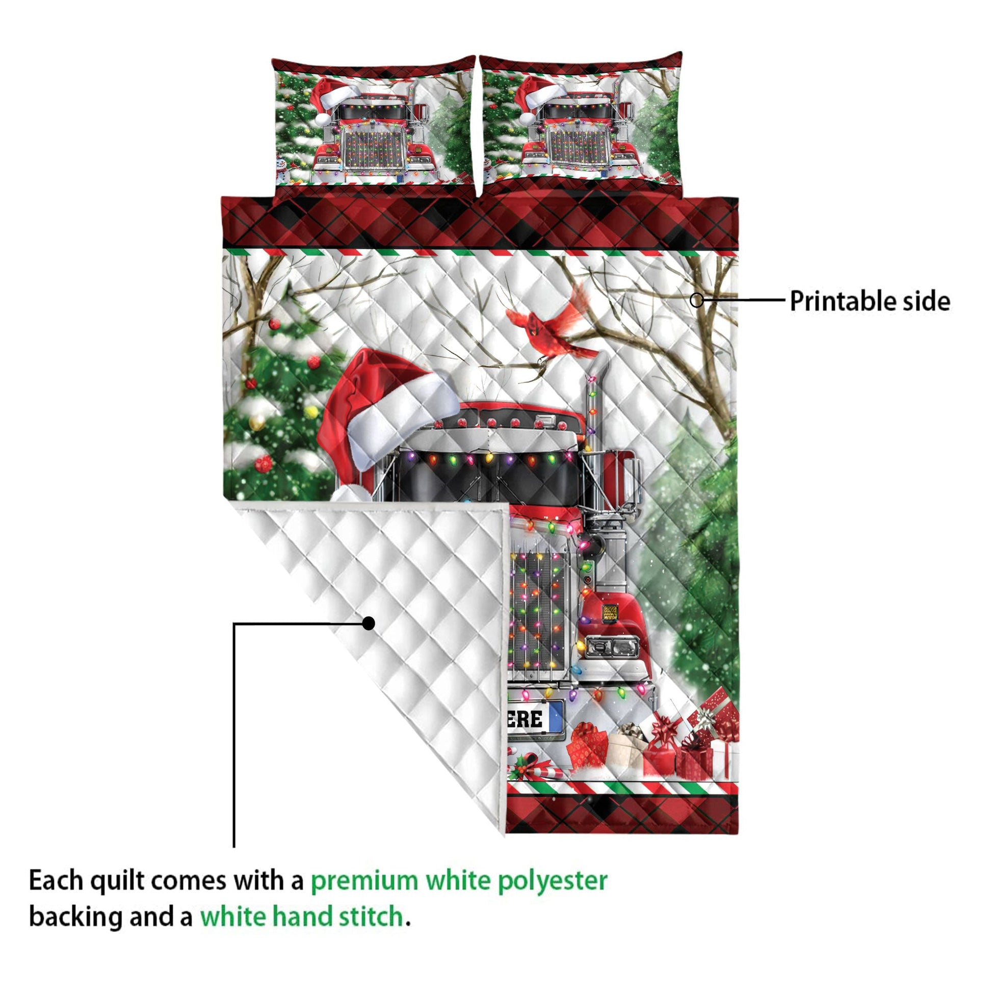 Personalized Trucker Quilt Set, Red Trucker Withmas String Light Quilt Blanket With Pillowcases, Custom Name Quilt Bedding Set, Christmas Gift