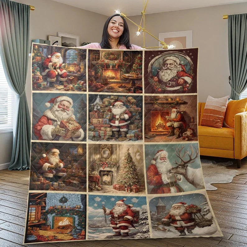Personalized Vintage Santa Claus Patchwork Christmas 3-Piece Quilt Bedding Set With Pillowcases