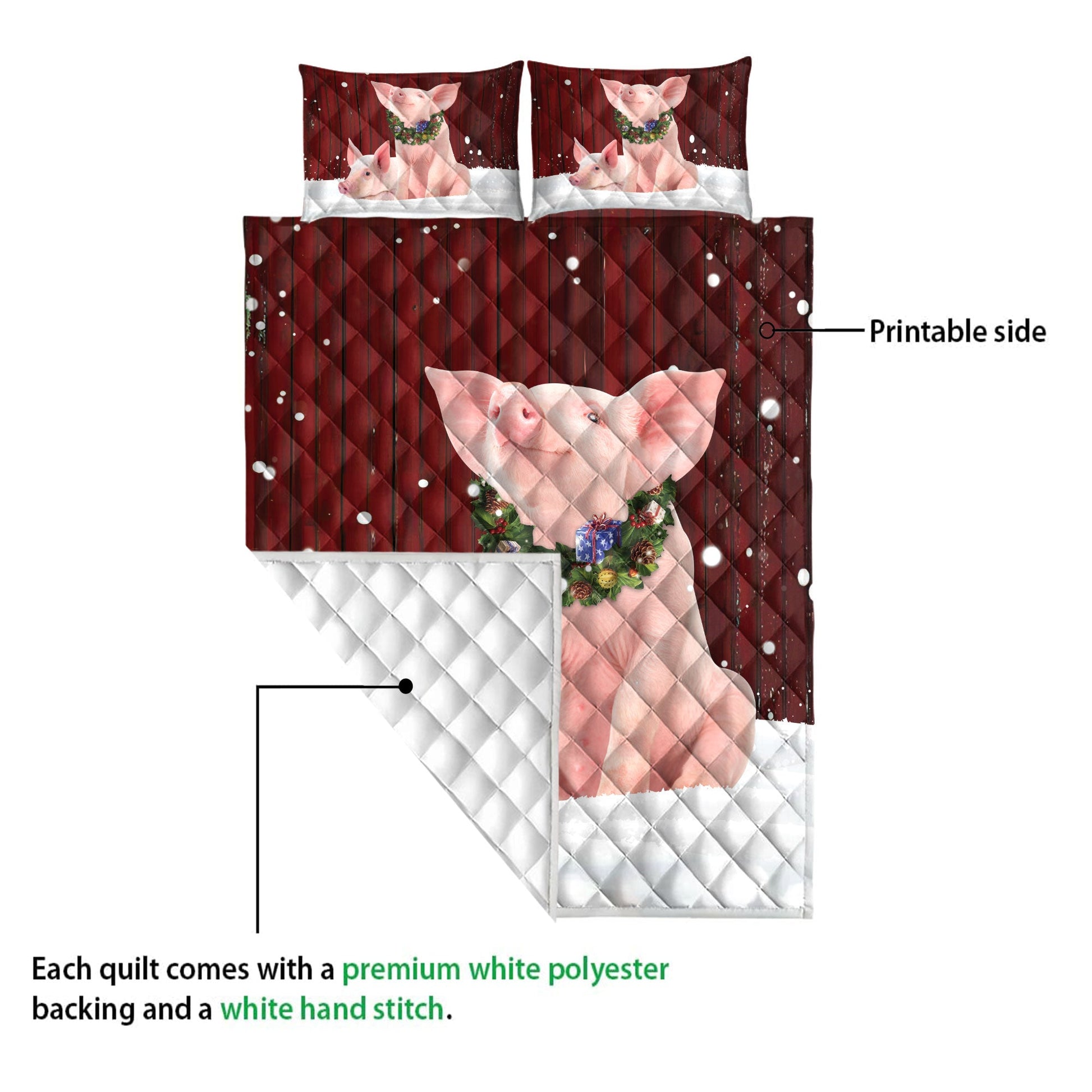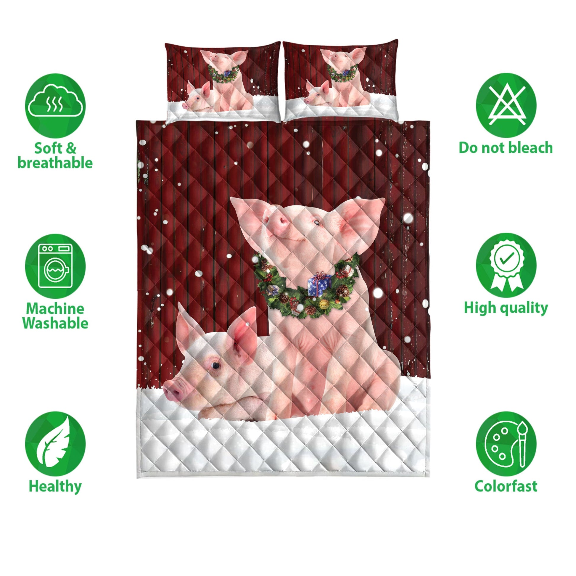 Pig Quilt Set, Pig With Wreathmas Farm Pig Quilt Blanket With Pillowcases, Quilt Bedding Set, Christmas Gift